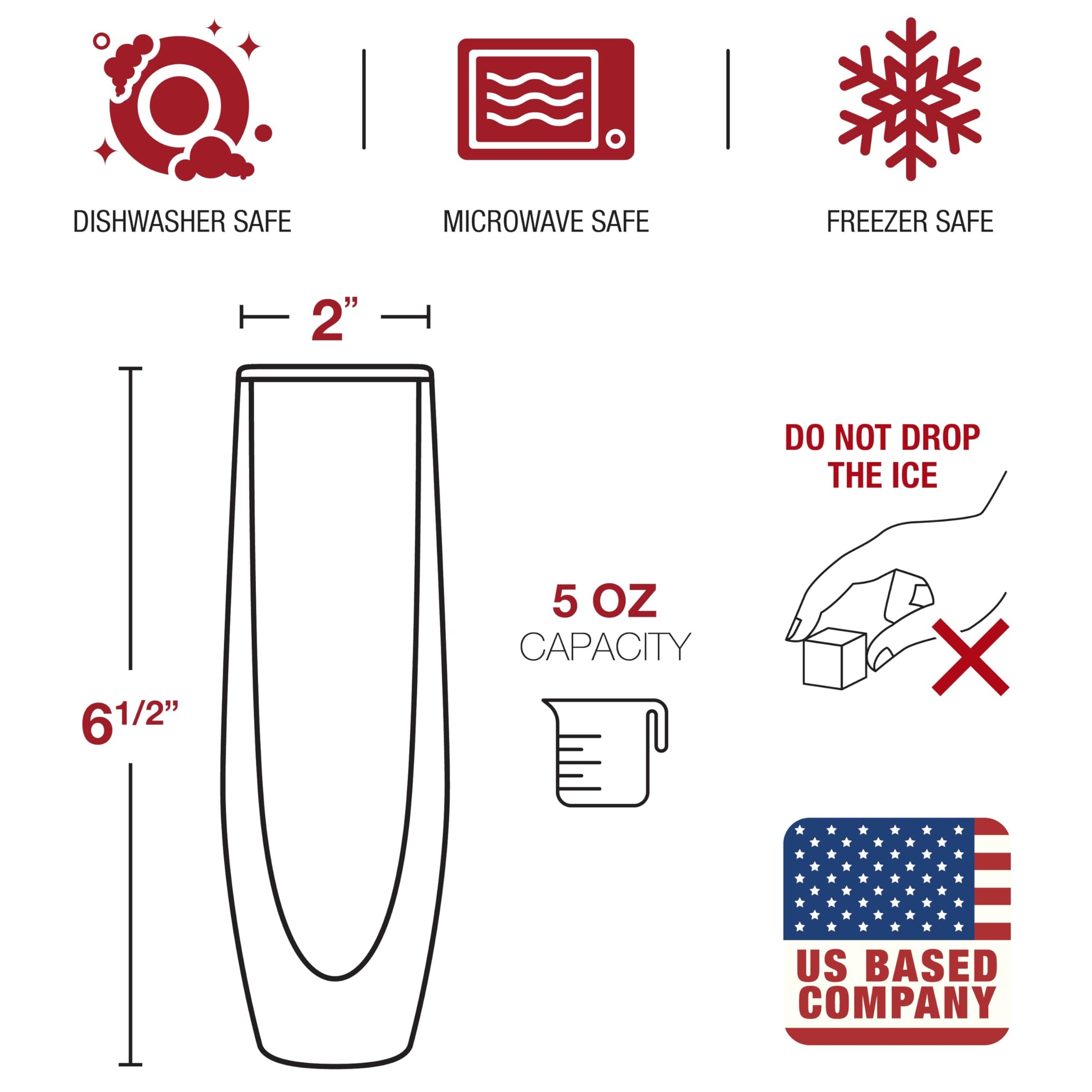 • Perfect Size for Elegant Sips: Each stemless glass champagne flute holds 5 oz and stands 6 inches tall. A great fit for champagne flutes stemless collections or stemless double wall champagne flutes for everyday and special use.
