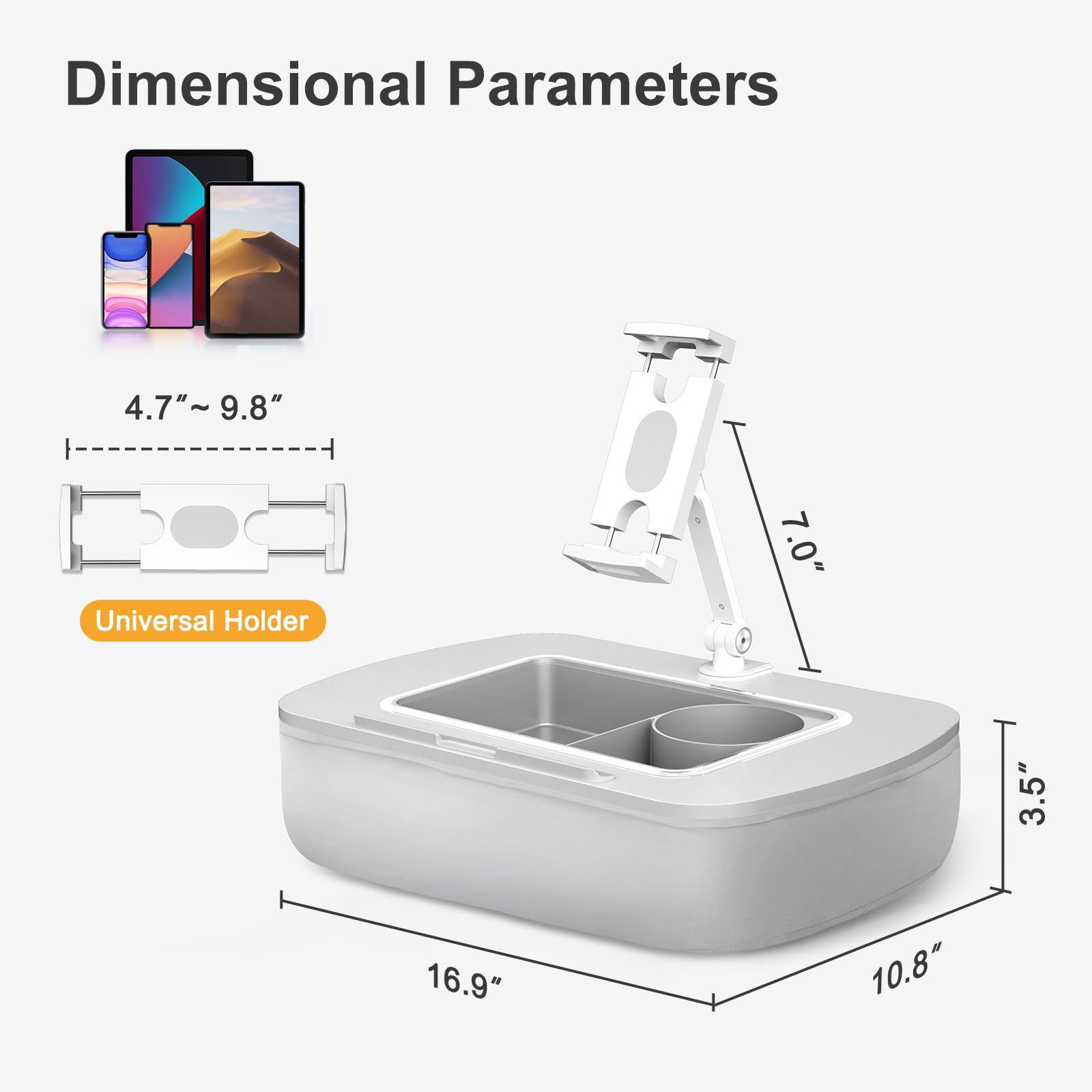• 【Wide Compatibility】 The adjustable clip supports devices from 4.7 to 9.8 inches, accommodating 4.7-13 inch Kindle, iPad, Tablet, iPhone, and Portable Monitors.