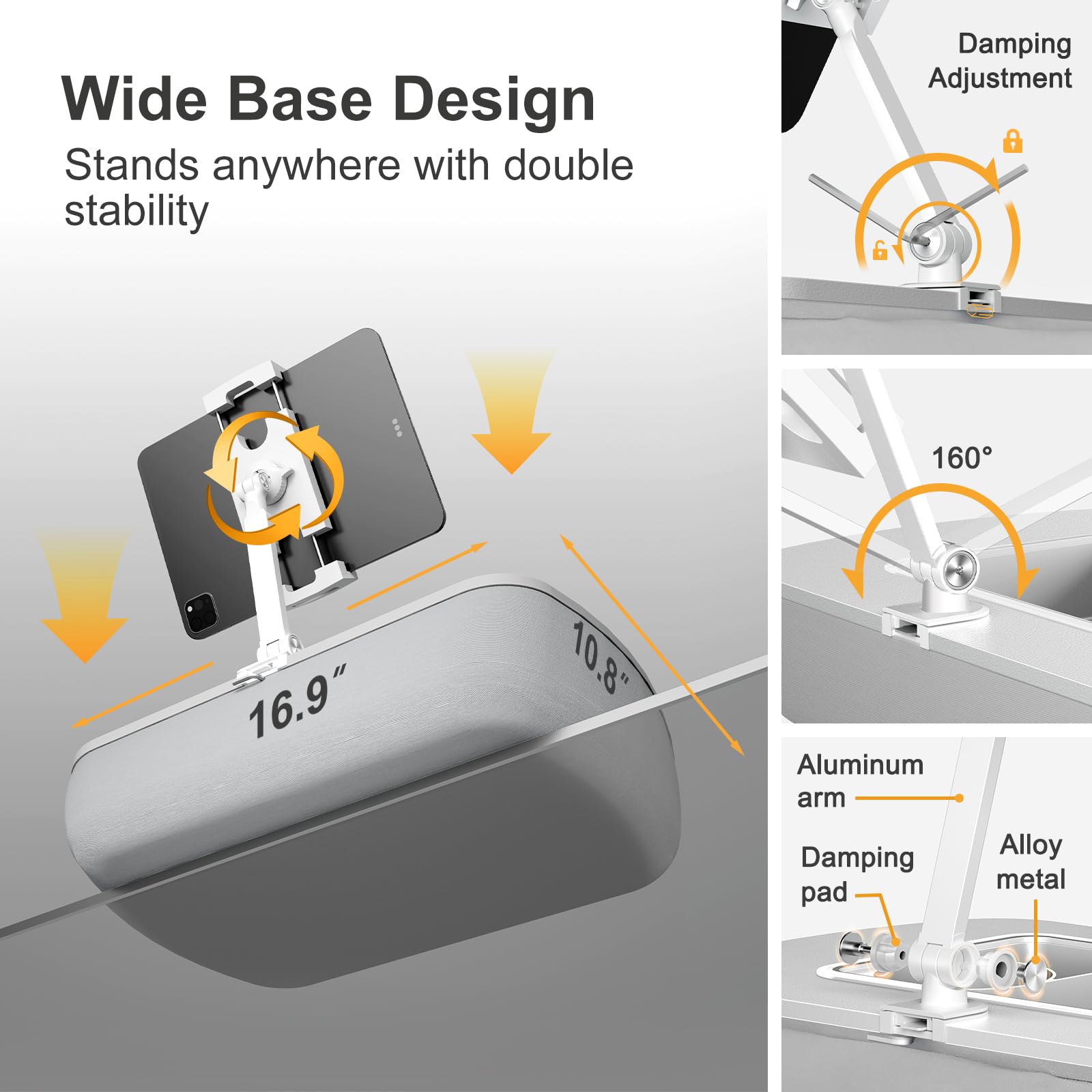 • 【Adjustable Flexibility】The detachable tablet arm features dual 180-degree adjustable joints with metal screws and a wrench for easy, precise position and stability adjustments.