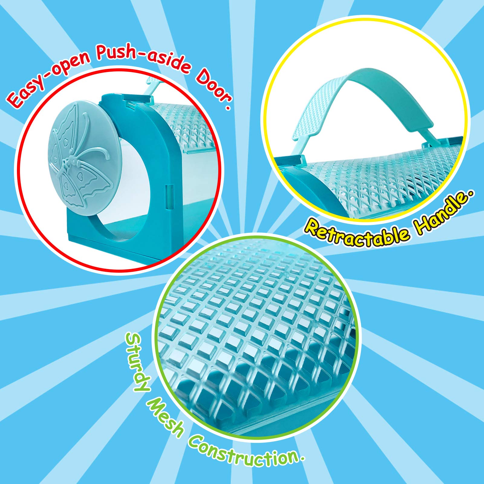 • The Bug Cage measures: 7.5 inches in length, 3.5 inches in height. 3.5 inches in width. The cage is small and portable enough for little kid’s hands