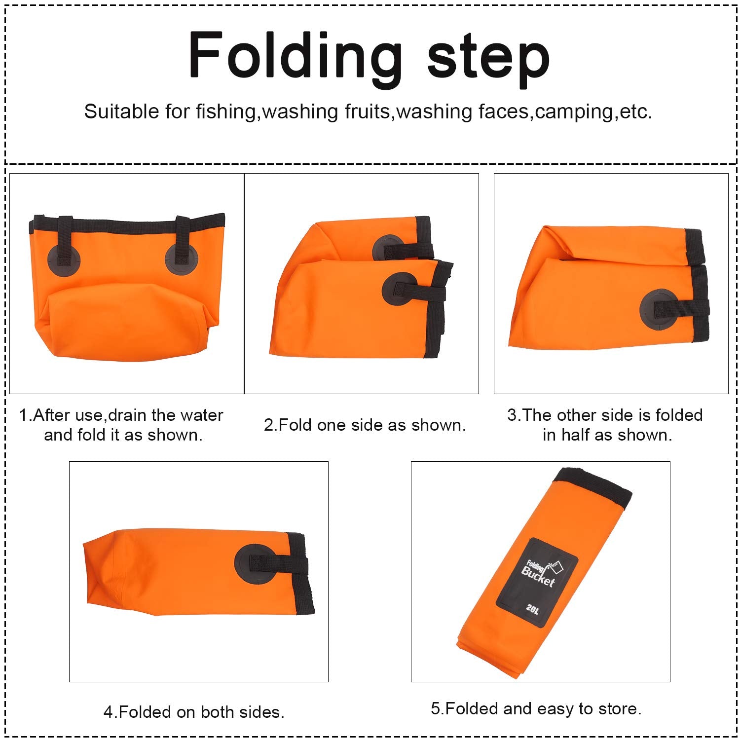 【Leakproof & Waterproof】:This folding buckets is made of waterproof fabric, holding water well, it will not leaking-low temperature, water resistant, it has the strong leakproof feature, Health, Safe to use You can take the water far away without leaking.