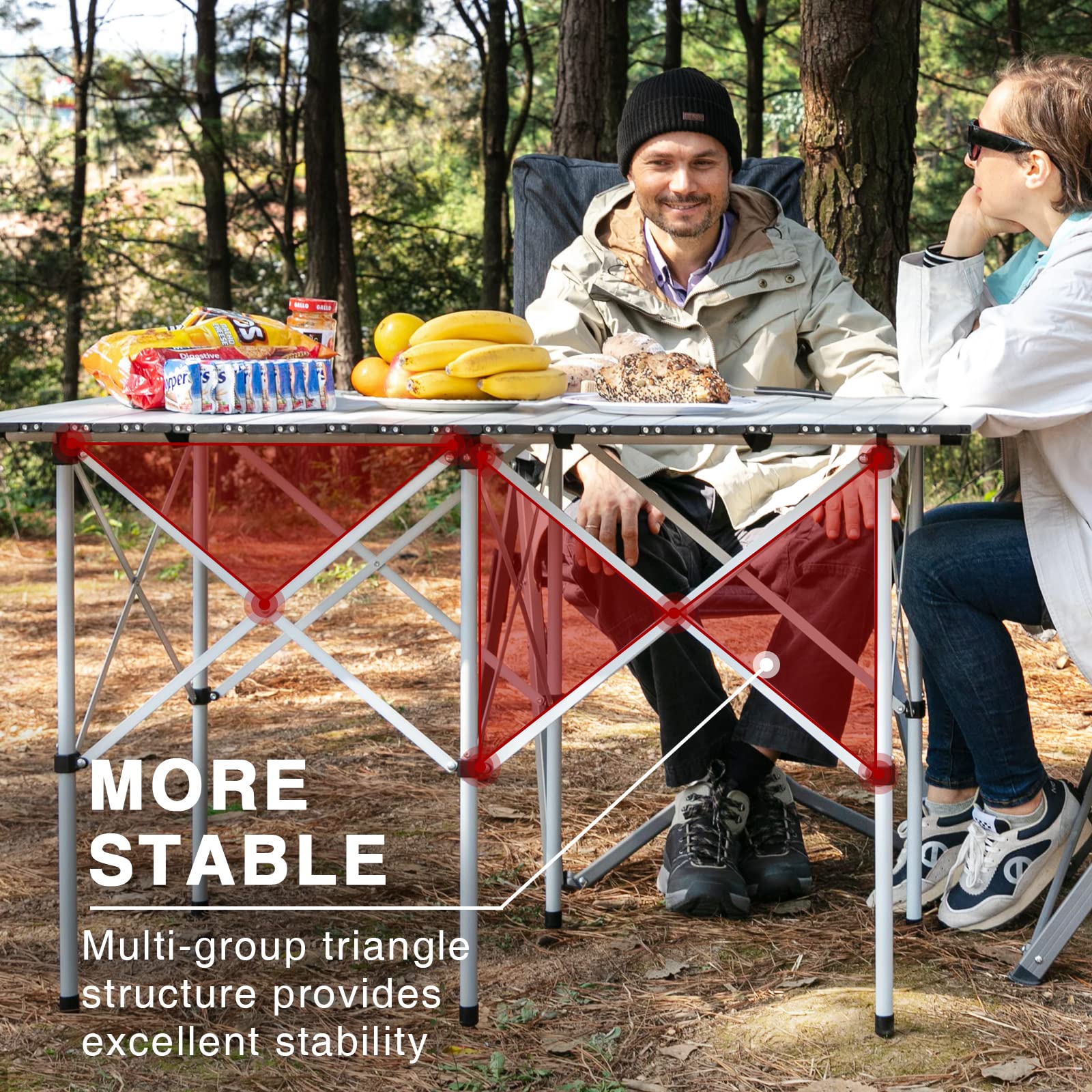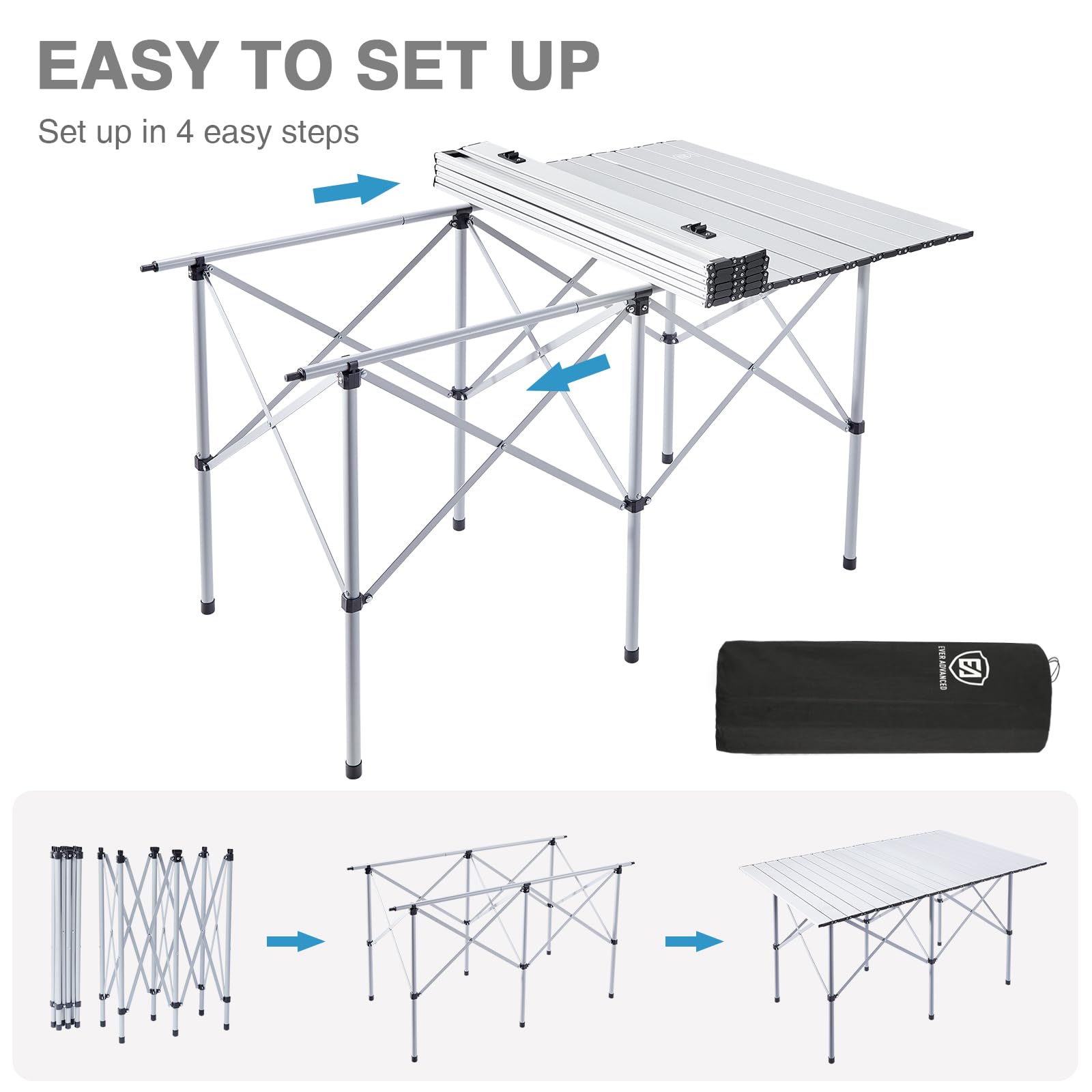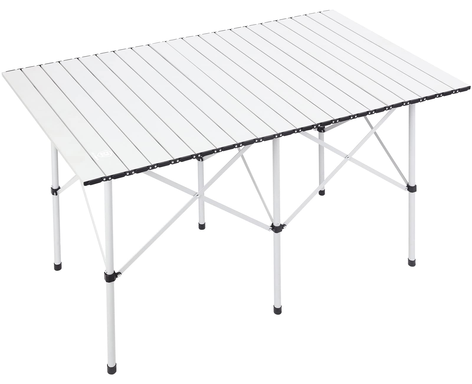 EVER ADVANCED Camping Table, Fold up Lightweight, 4-6 Person Portable Roll up Aluminum Table with Carry Bag for Outdoor, White