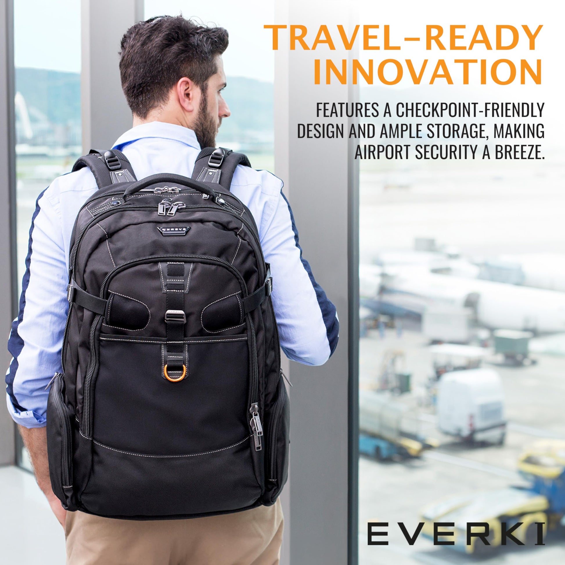 • ERGONOMIC COMFORT: The EVERKI Business 120 ensures maximum convenience with its 5-point ergonomic strap system. Padded shoulder straps, an adjustable chest strap, and a breathable back panel with airflow channels provide top-tier support even during long commutes.