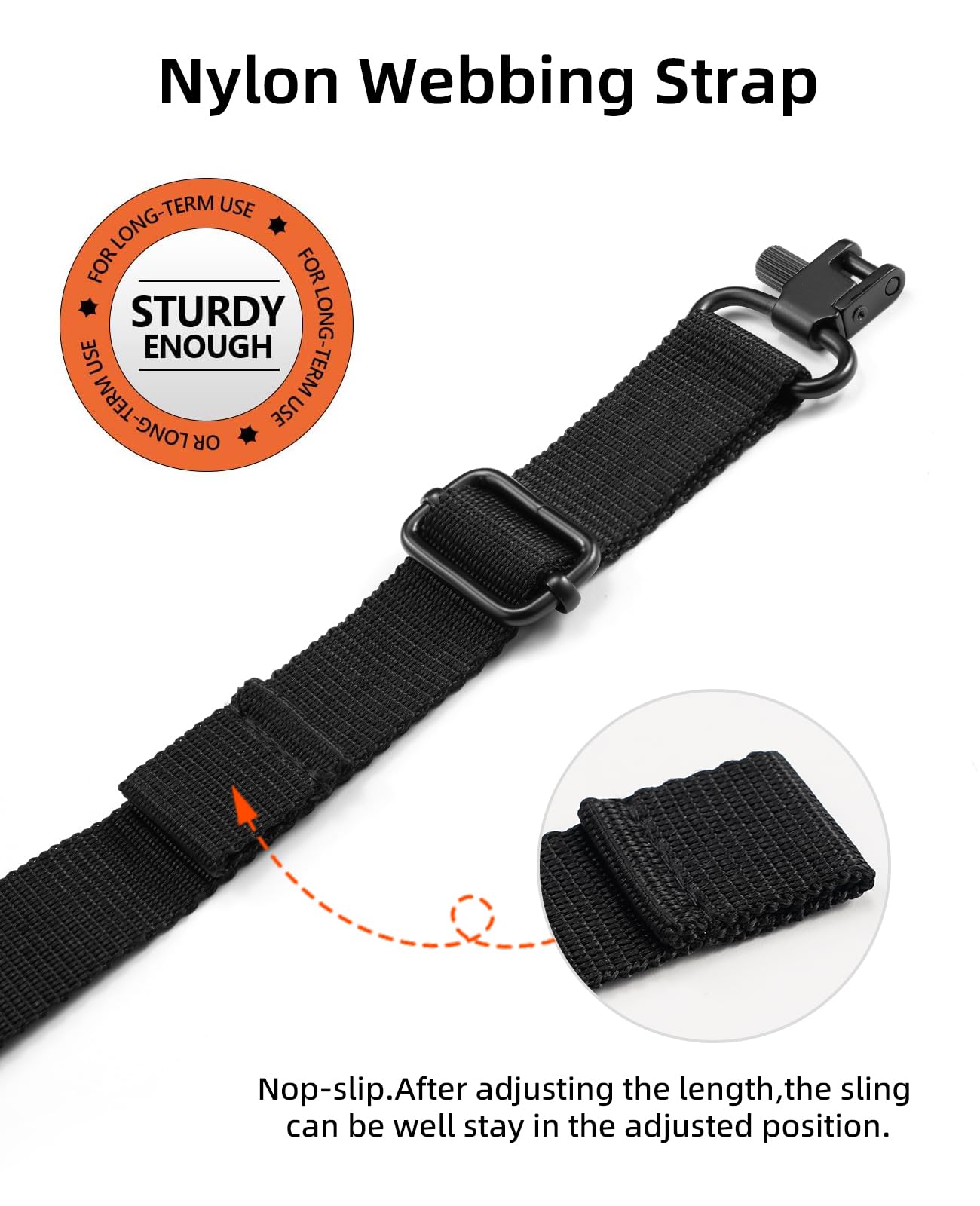 • Nylon Webbing Strap: With tough nylon materials, this gun sling is built to last.The length adjustment buckle and swivel of the rifle sling are made of all metal materials,more strong and sturdy