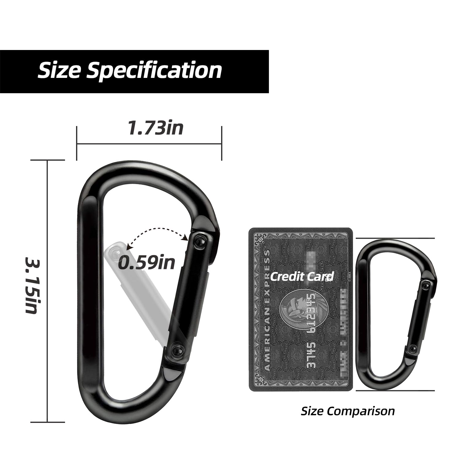 • Heavy Duty Carabiner - 3 inch Iron heavy duty black carabiner clip, mini and compact functional design, You can easily open and close these hooks with just one hand.