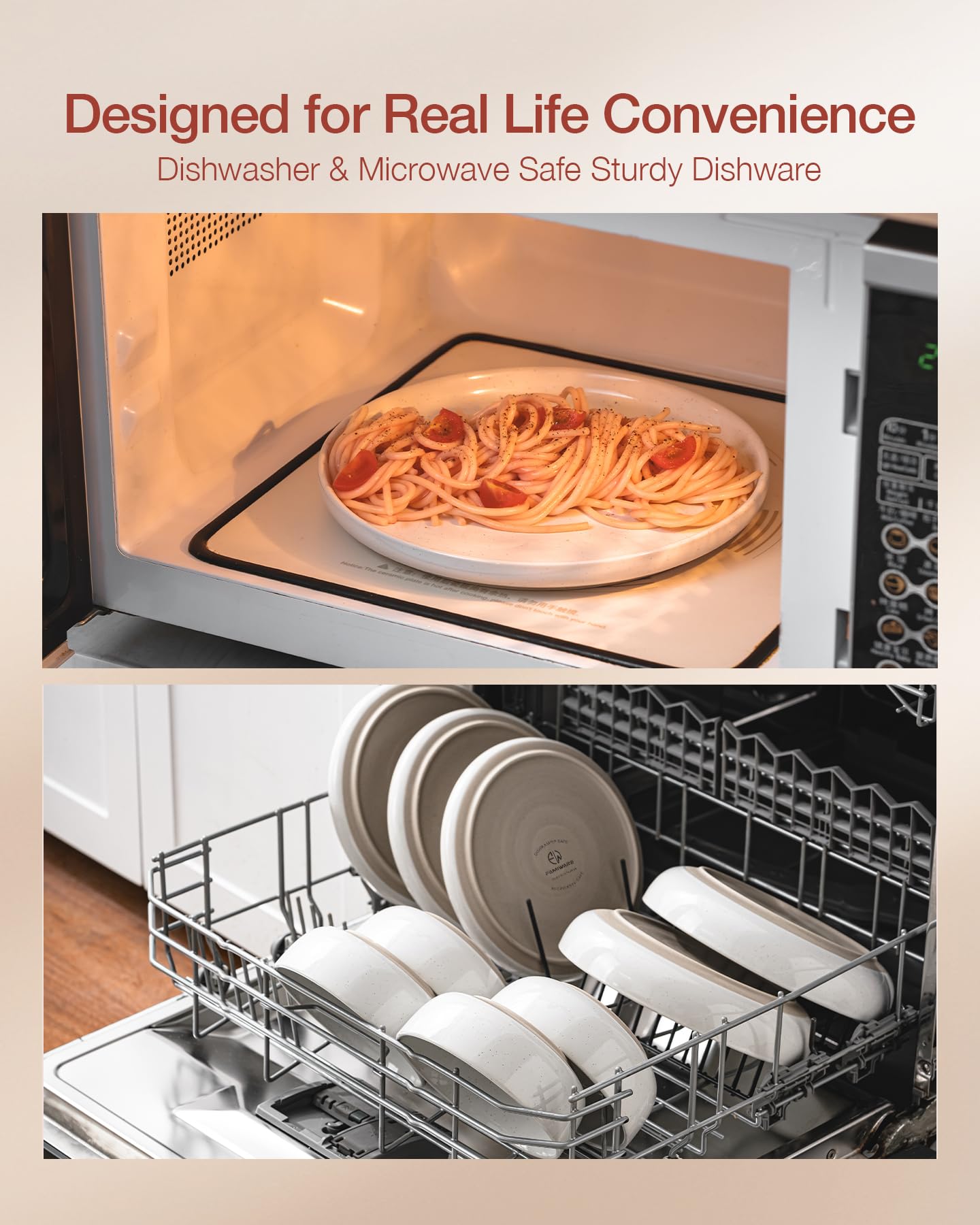 • 【DISHWASHER AND MICROWAVE SAFE】Our dishes have passed microwave and dishwasher safe testing at internationally accredited laboratories. Each plate and bowl is dishwasher safe and microwave safe.