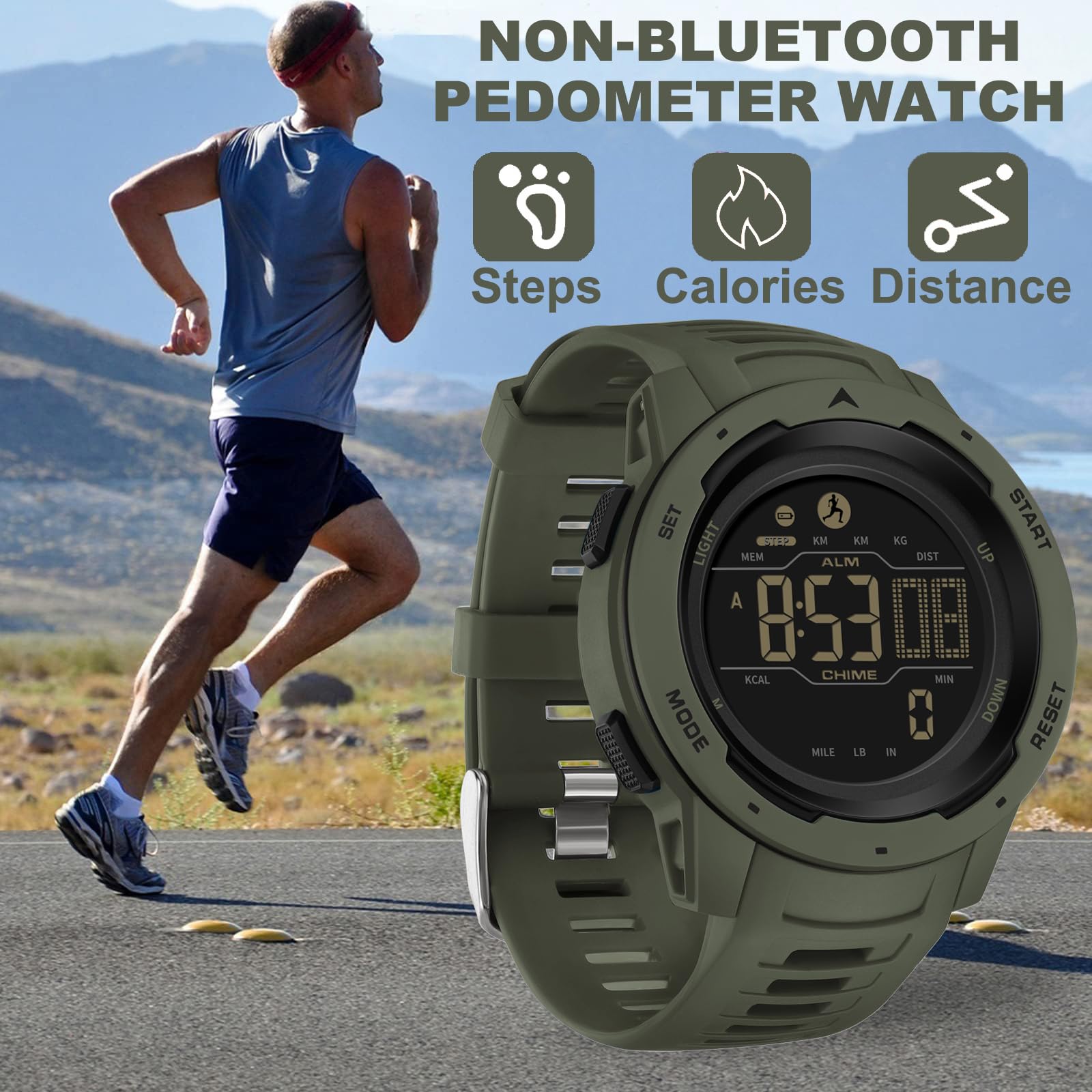 findtime Men's Digital Watch Waterproof Pedometer Watches Sport Watch Step Counter Calorie Military Watch with Stopwatch Alarm LED Backlight Countdown