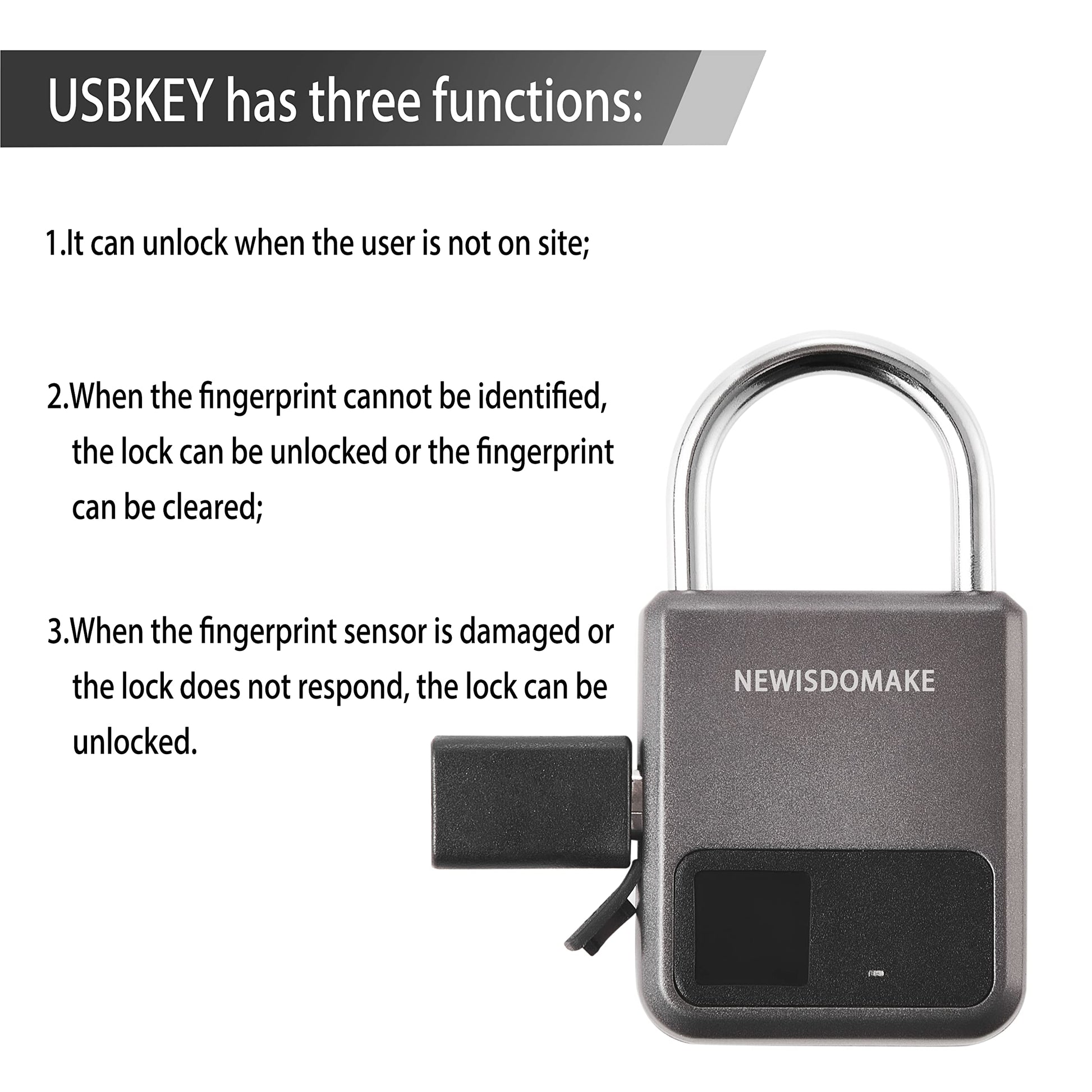 • 【Convenient and Safe】Your finger is the key, and it only takes 0.5 second unlock it, fingerprint padlock can record up to 20 different finger. Never worry about losing your key or forgetting passwords. USB backup key available as an emergency opening option.