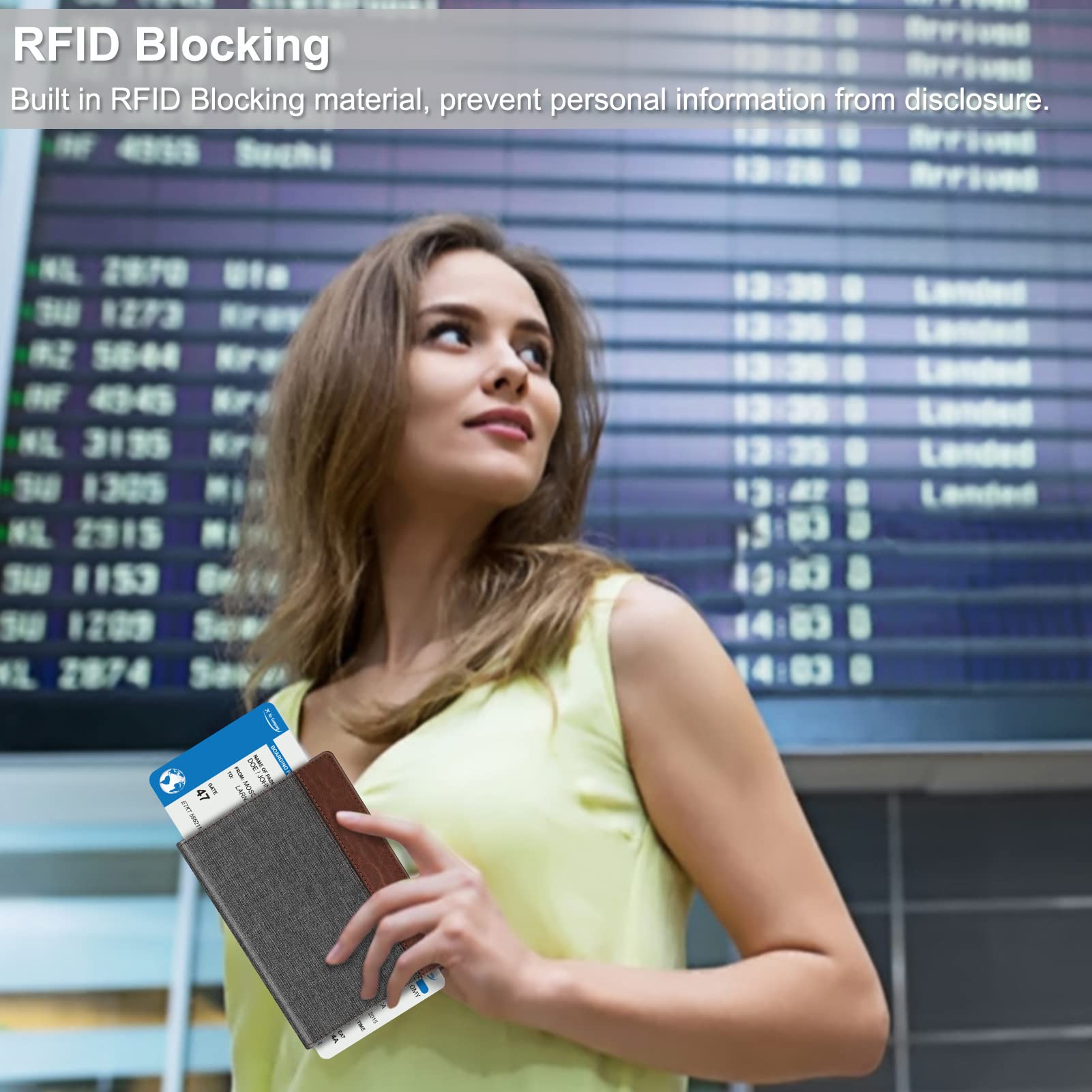 Fintie Passport Holder, Slim Travel Wallet RFID Blocking Card Case Cover Passport Cover Protector Essentials with Credit Card Slots for Women/Men, Denim Charcoal Brown