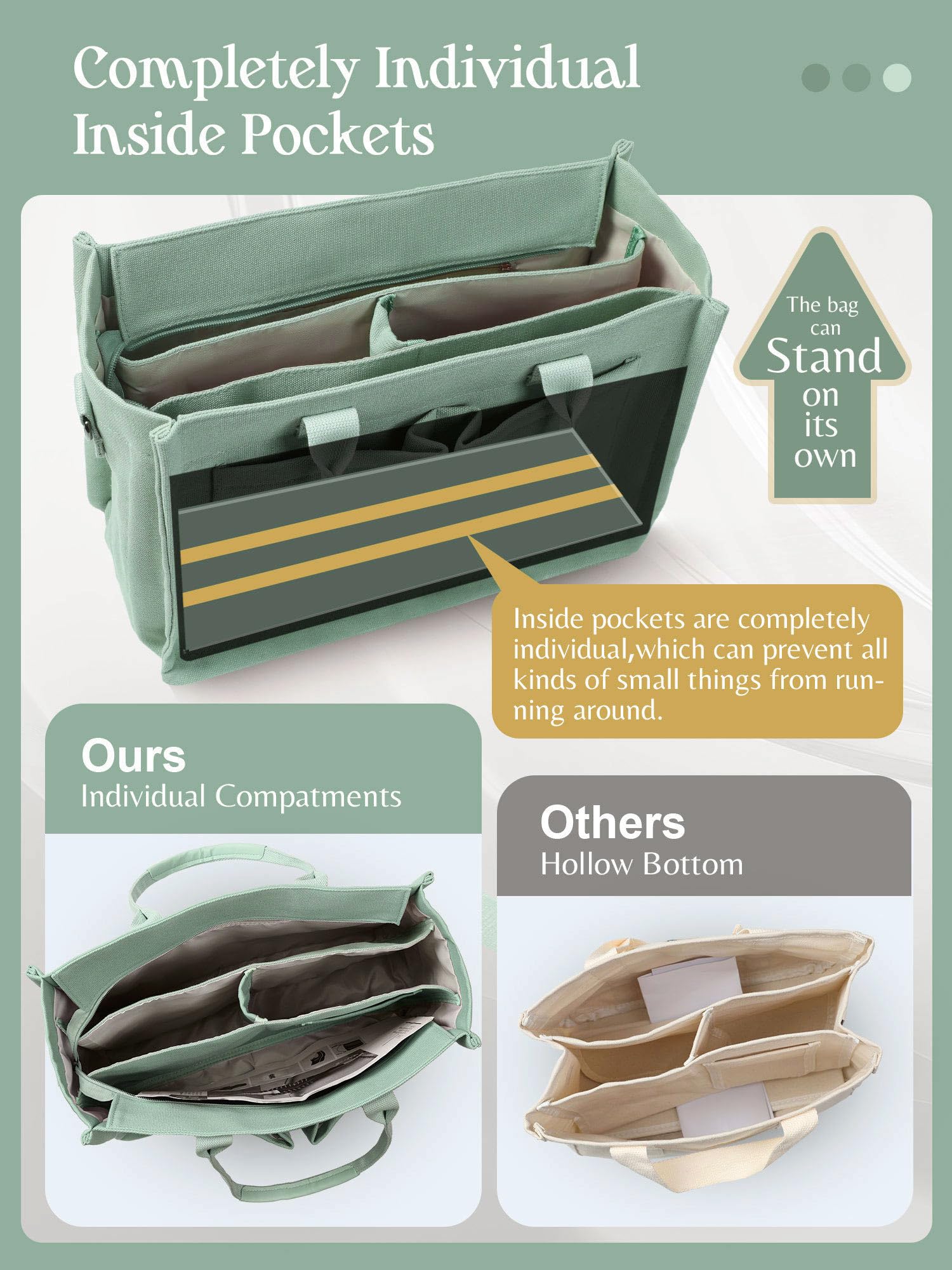 • Multi Individual Pockets: the tote purse features multi independent compartments, making it easy to organize your personal items. Besides, all dividers are sewn to the bottom to ensure you stay organized all day without worrying about items rolling around