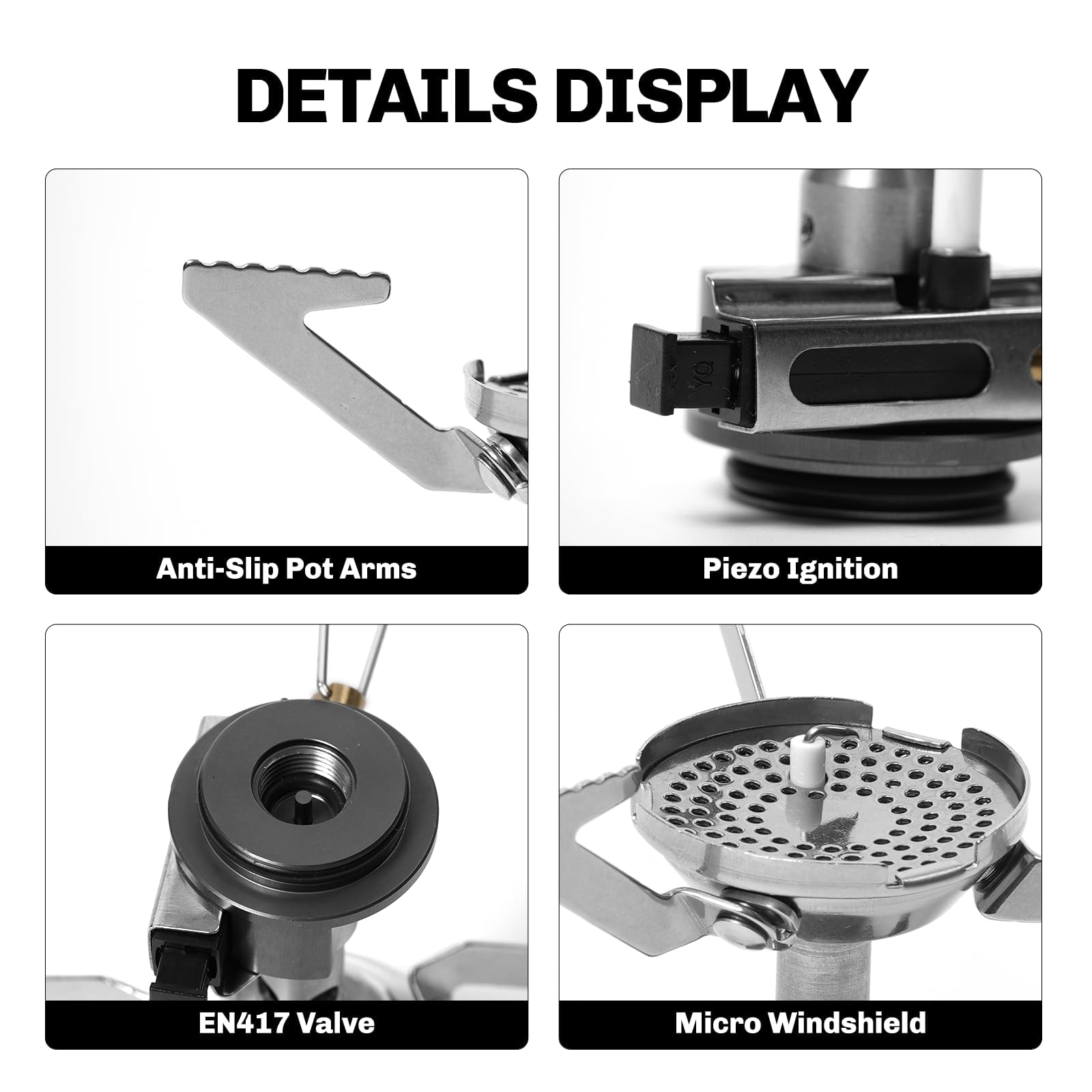 • Durable Premium Materials: Built with stainless steel, ceramic, aluminum alloy, and silicone, this stove offers long-lasting durability and reliable performance for outdoor adventures.