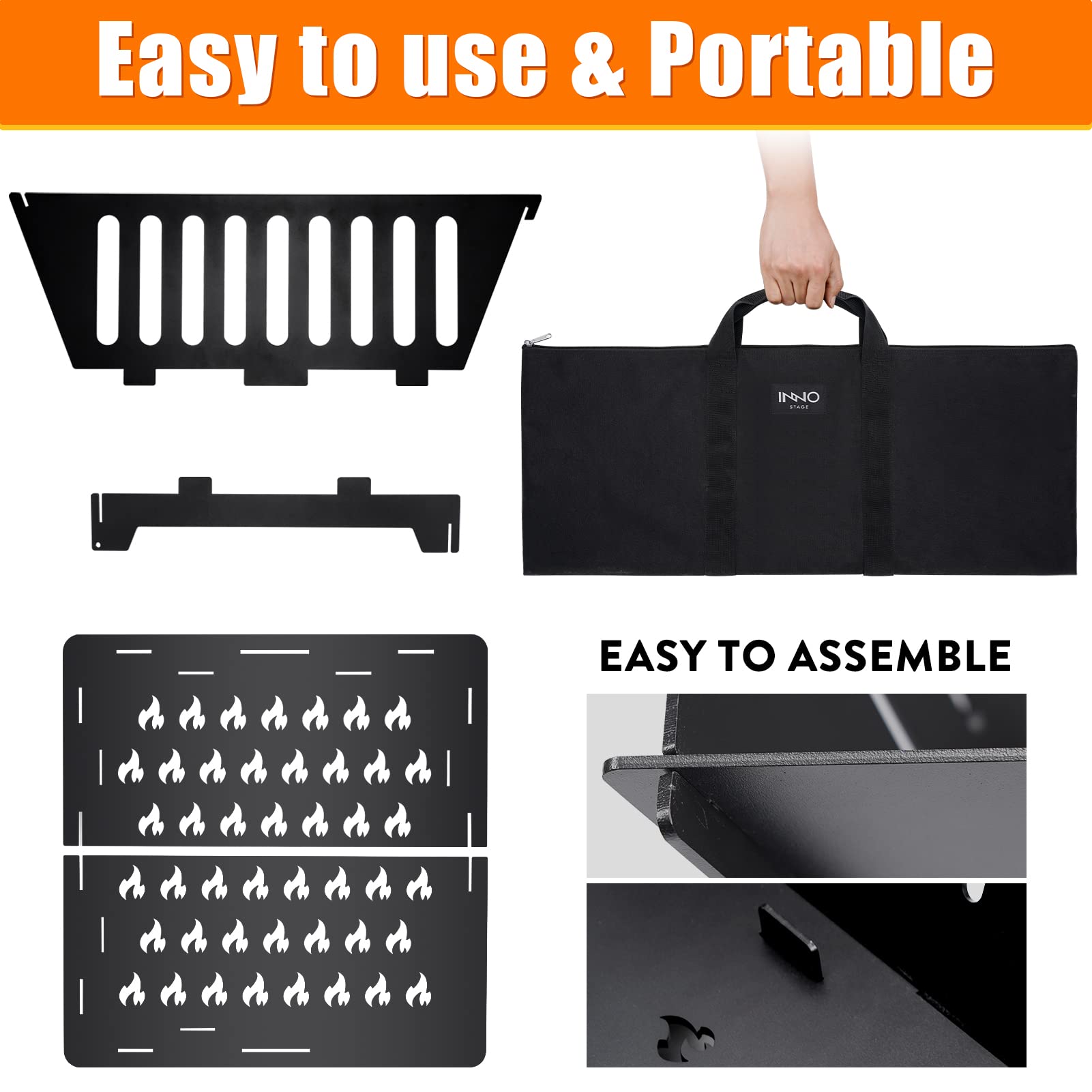 • Patented Portable Fire Pit: Unlike other bulky fire pits, it is designed to be detachable. The simple design makes it easy to assemble with the manual enclosed. Sent a portable tote as gift, you can carry or store it easily.