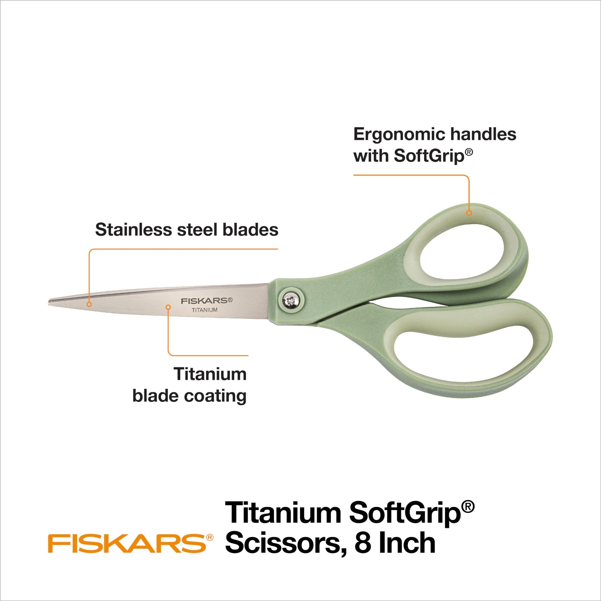 Fiskars SoftGrip Titanium Scissors - Contoured Performance All Purpose - 8" Titanium - Straight Paper Scissors for Office, and Arts and Crafts - 3-Count