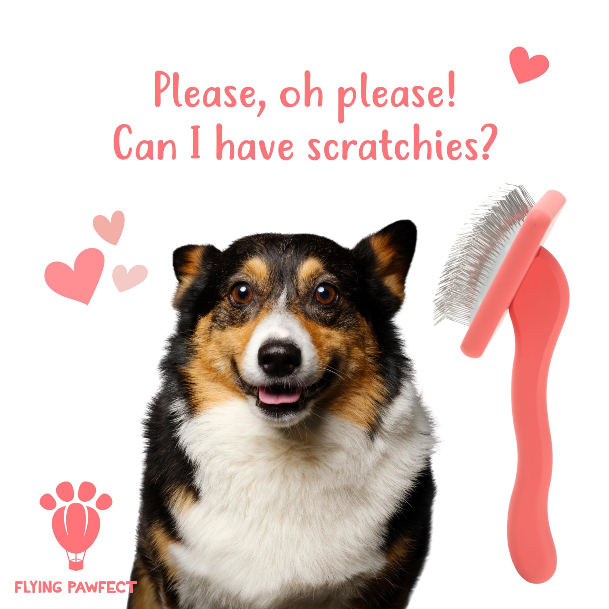 Flying Pawfect Dog Slicker Brush for Grooming Pet Hair - Best Slicker For Poodle & Golden Doodle - Long Haired Tool For Dogs - Goldendoodle Long Pin Brush For Dematting (Large)