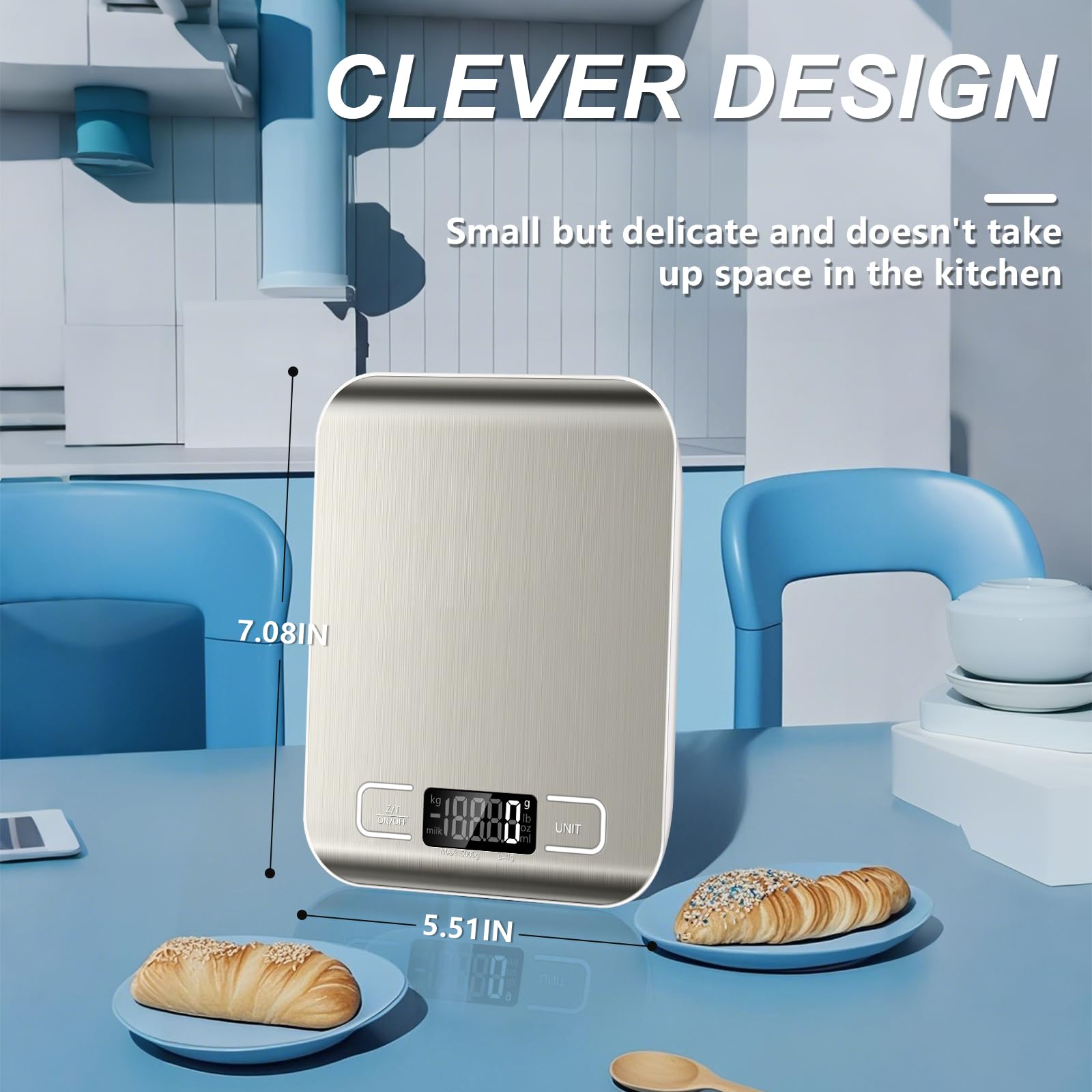• [SIMPLE BUT NOT SIMPLE]--The exquisite and compact kitchen food scale is made of high-quality stainless steel. Compared with food scales on the market, it is more waterproof and wear-resistant, and can easily wipe off any stains on the surface to keep it clean and maintained. In order to prevent edge collisions, we adopt a rounded corner design and four anti-slip bases, which increase safety and stability and bring you a more convenient lifestyle.