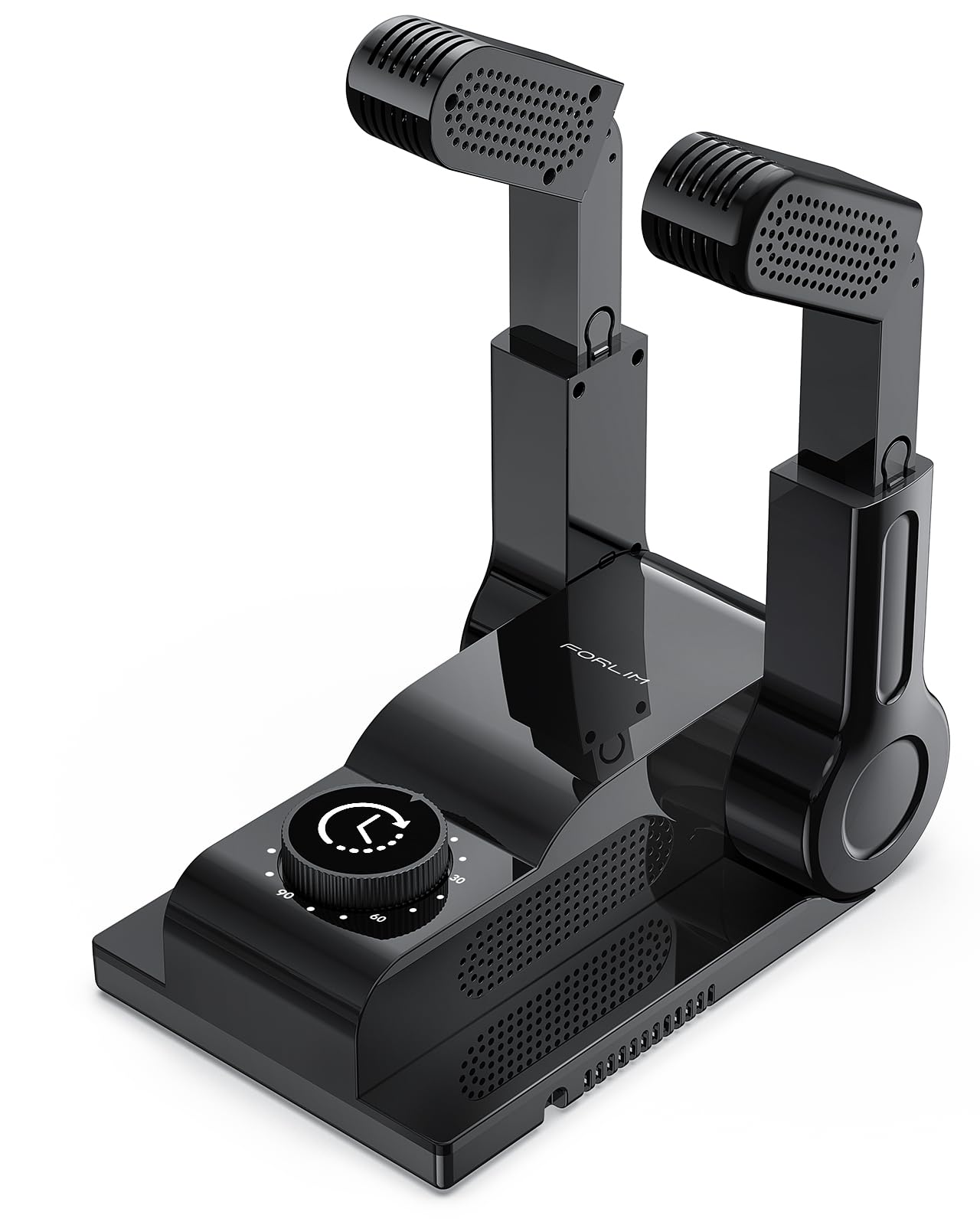 FORLIM Boot Dryer for Work Boots, Shoe Dryer with Heat Blower, Glove Dryer & Boot Warmer - 180° Adjustable Dry Rack - Telescopic Bendable Dry Ports - Intelligent Timer - Black