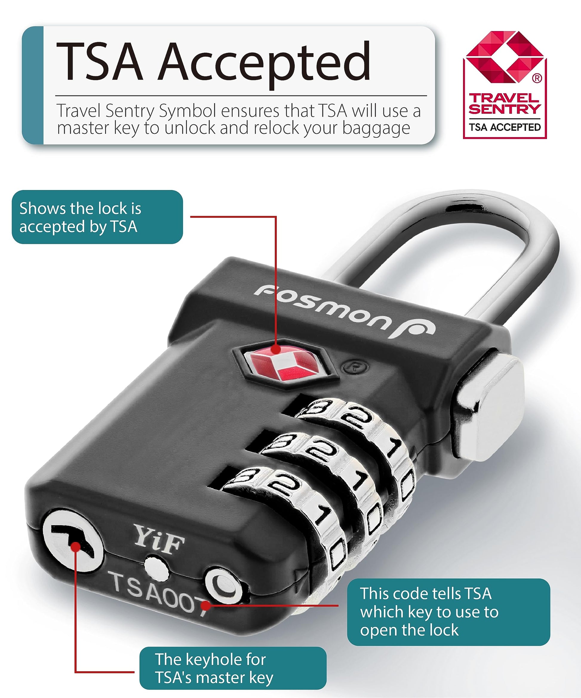• [TSA ACCEPTED LUGGAGE LOCKS] The Fosmon TSA lock allows your luggage to be checked without damage to the lock. The TSA agent will open and re-lock your luggage after inspection, giving you peace of mind.