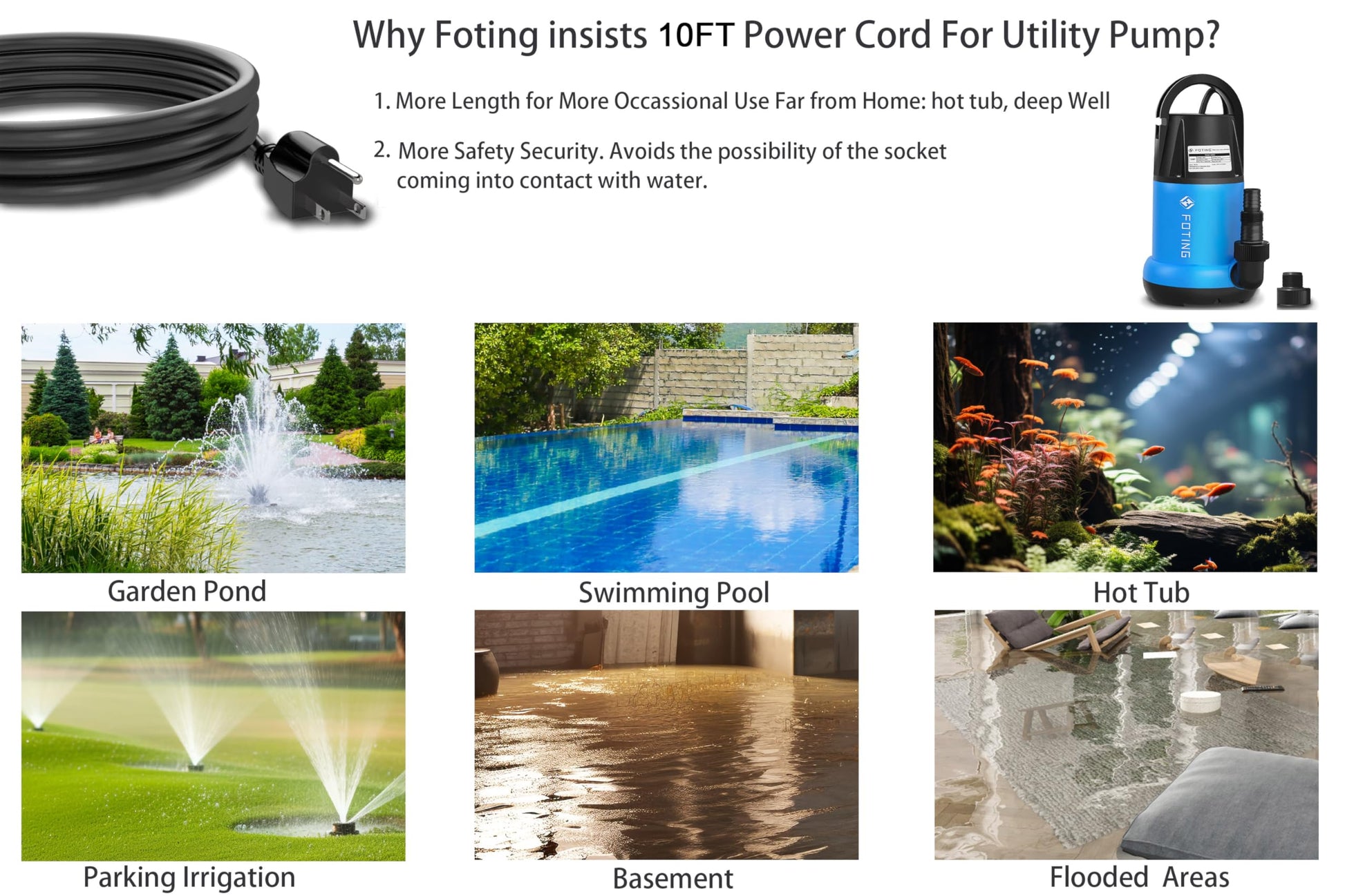 • 4 DETAILS: 10FT power cord for greater range of use;Removable bottom easy to clean and maintain pump life; Rounded handle prevents cuts and comfortable to use; Thermoplastic housing for corrosion resistant and durable.
