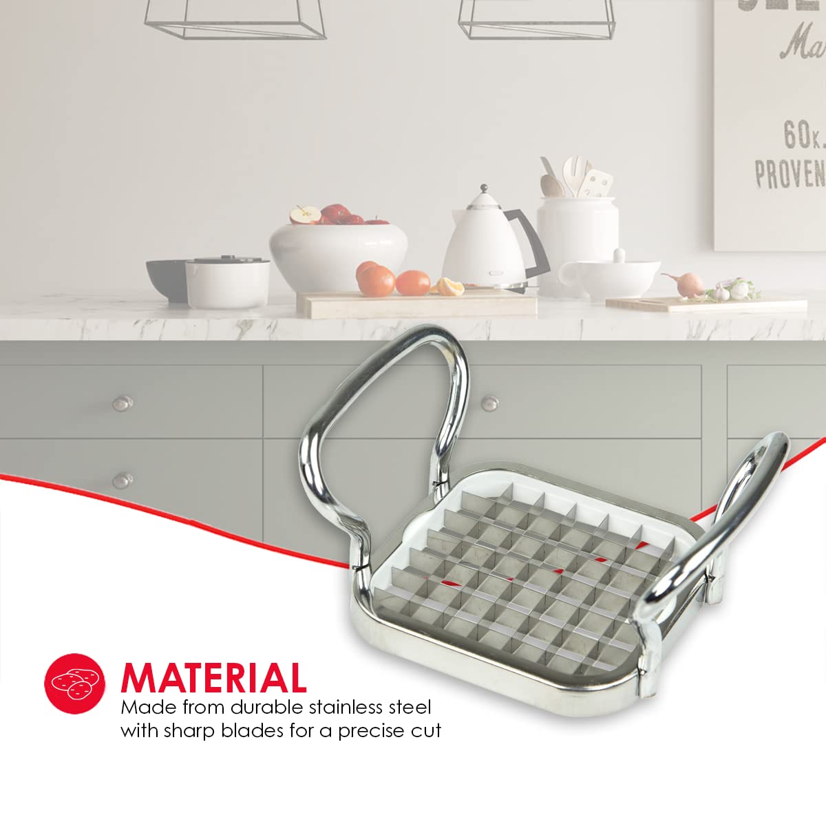• PERFECT FRIES EVERY TIME: Stop cutting your fries by hand and start making them effortlessly with this cutter. With multiple squares, you can make batches of fries at a time.