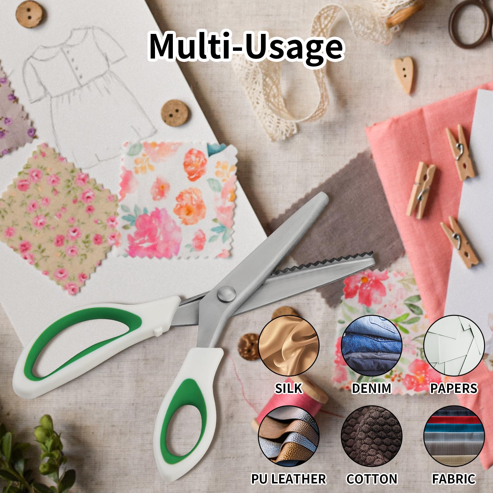 • Zig Zag Pattern - The fabric zigzag scissors feature sturdy stainless steel blades, ensuring easy and equal zigzag cuts. They are ideal for preventing fabric fraying and are perfect for crafting. These sewing scissors are particularly suitable for pattern making, especially for fleece, flannel, denim, knit fabric, cotton, buckskin, professional tailoring, sewing, embroidery. These pinking shears for fabric cutting can be used to add decorative edging to ribbon, paper, and other materials.
