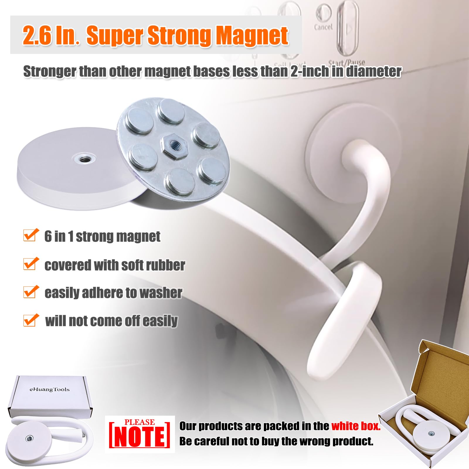 • STRONG ADHESION - The front loader washer/dryer door prop has a very strong 6 in 1 magnet. The 2.6'' Large magnetic base can firmly adhere to the metal surface of your washing machine and will not come off easily