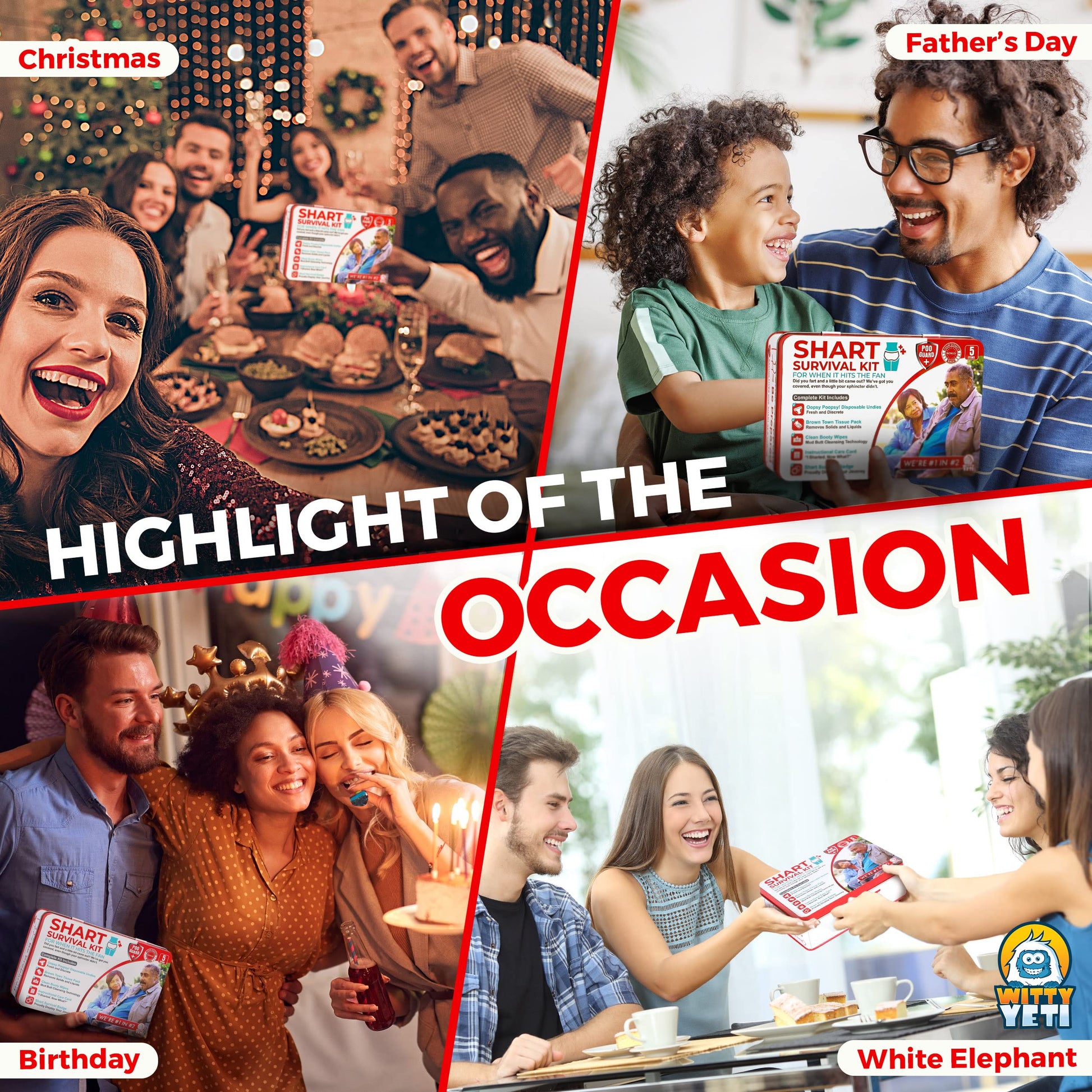 Funny Shart Survival Kit by Witty Yeti. Ultimate Poop Prank Gag Gift Set Contains Wet Wipes, Disposable Underwear, Tissues and Hilarious Badge. Novelty Fart Potty Pack Great for Friends or Family