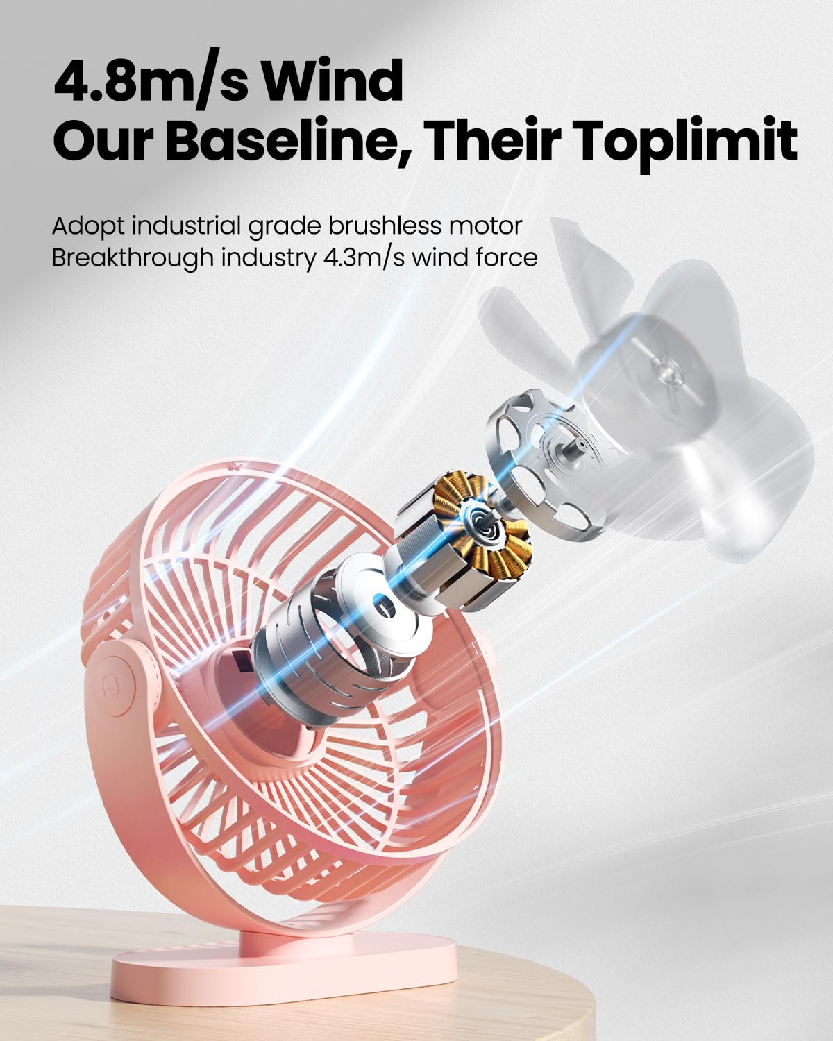 • Small Size and Lightweight: Pink travel fan with 5.5 inch body and 0.6 lb weight is compact; 5-feet cord help move the mini fan around your desk; Perfect for home, office, car, desktop, night stand, bedroom, baseball games, camping and travelling
