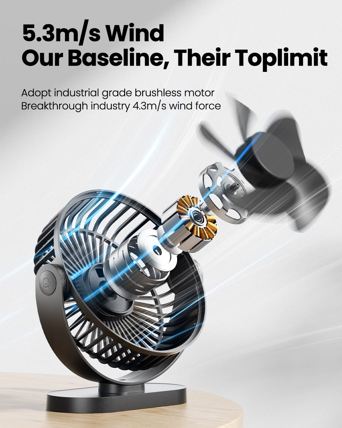 • Powerful and Super Quiet: The usb desk fan comes with a upgraded motor, makes wind stronger and noise lower; Max wind speed reachs 5.3 m/s, 30-50 db noise level; A great personal fan for sleeping and working (Please powered by a 5 V / 2 A power supply)