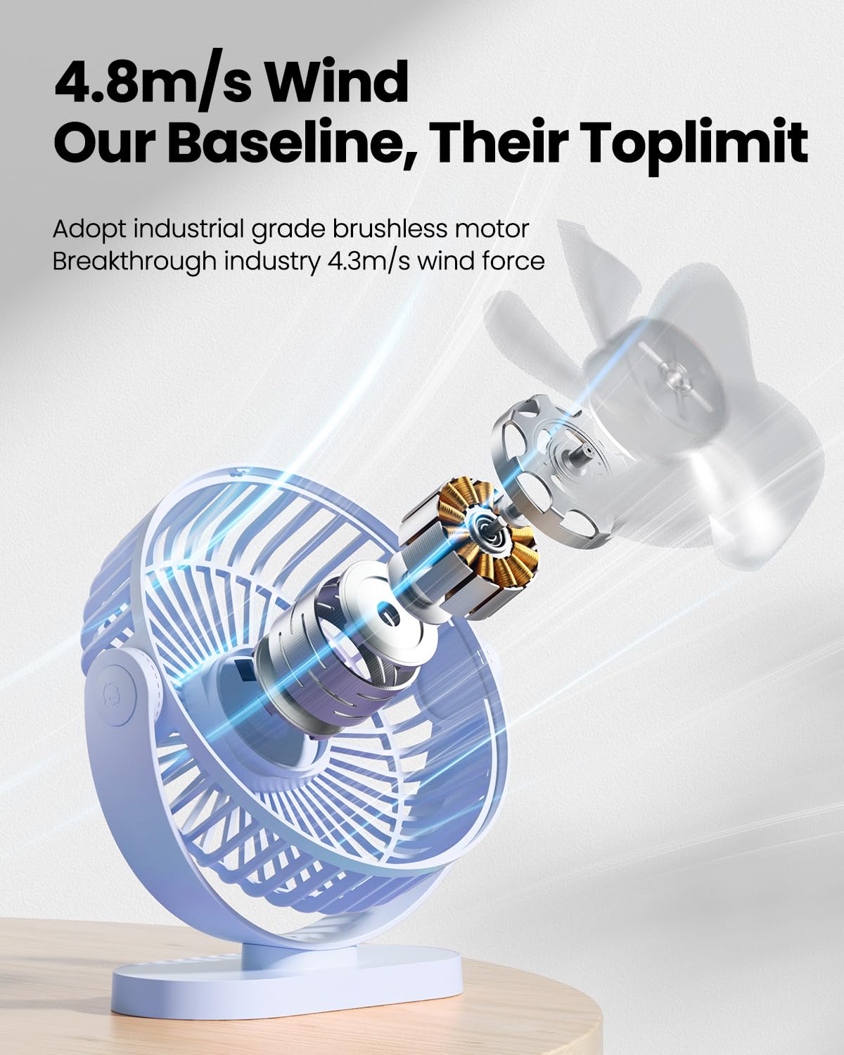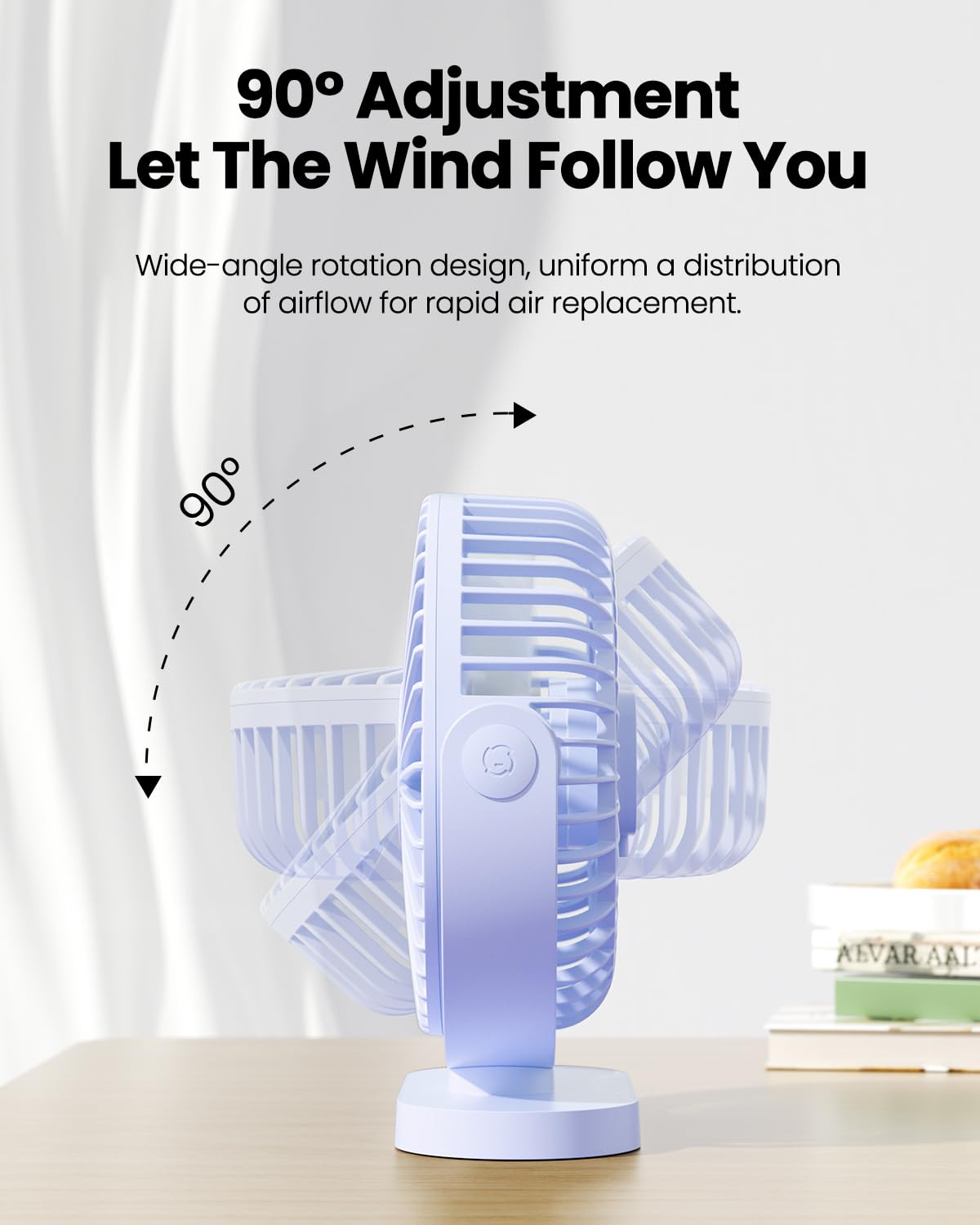 • Powerful and Super Quiet: The usb desk fan comes with a upgraded motor, makes wind stronger and noise lower; Max wind speed reachs 5.3 m/s, 30-50 db noise level; A great personal fan for sleeping and working (Please powered by a 5 V / 2 A power supply)