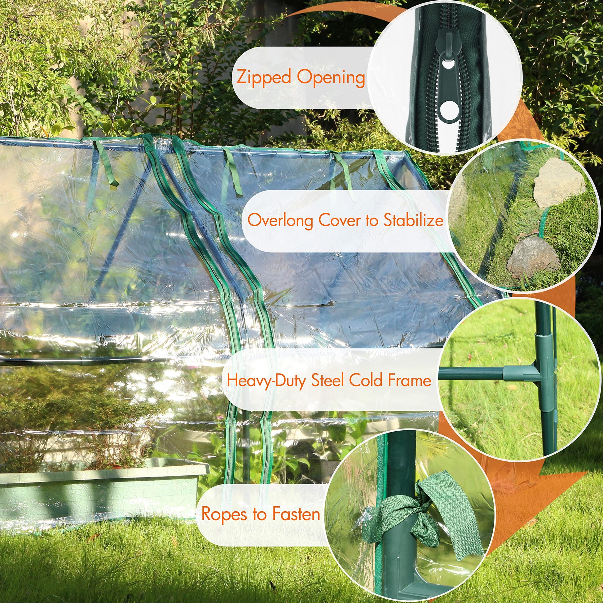 • Mini Greenhouse - This garden greenhouse preserves warmth and sunlight for plants, which is very suitable for planting, antifreeze, cold protection and display. The greenhouse is able to move it around in the garden and protect vegetables that were less cold tolerant of late frosts. The cover side is longer for putting dirt for a snug fit.