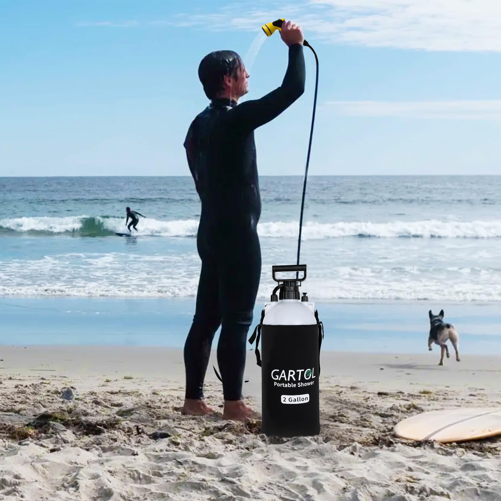 Gartol 2 Gallon Portable Shower with Handheld Showerhead, Silicone Bath Massage Brush, and Thermal Insulation Bag, High-Pressure Camping, Surf, Dog Shower Sprayer