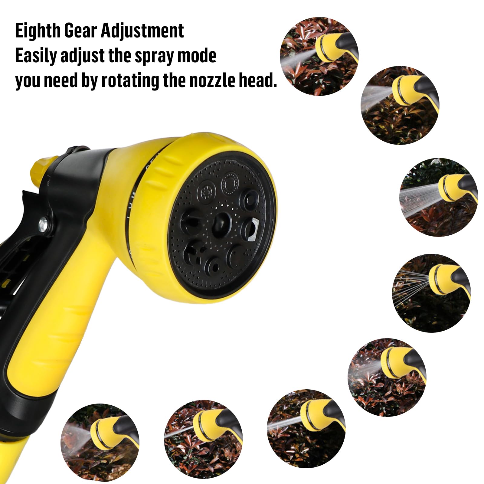 • [HUMANIZED DESIGN WATER GUN] 360-Degree Rotating Nozzle with 8 Sprinkling Modes: Experience versatile water spraying with a nozzle that effortlessly rotates 360 degrees. Eight sprinkling modes cater to different needs, providing a customized and enjoyable experience. The buckle on the water gun can be locked, non-slip, widened and labor-saving handle conforms to ergonomics.