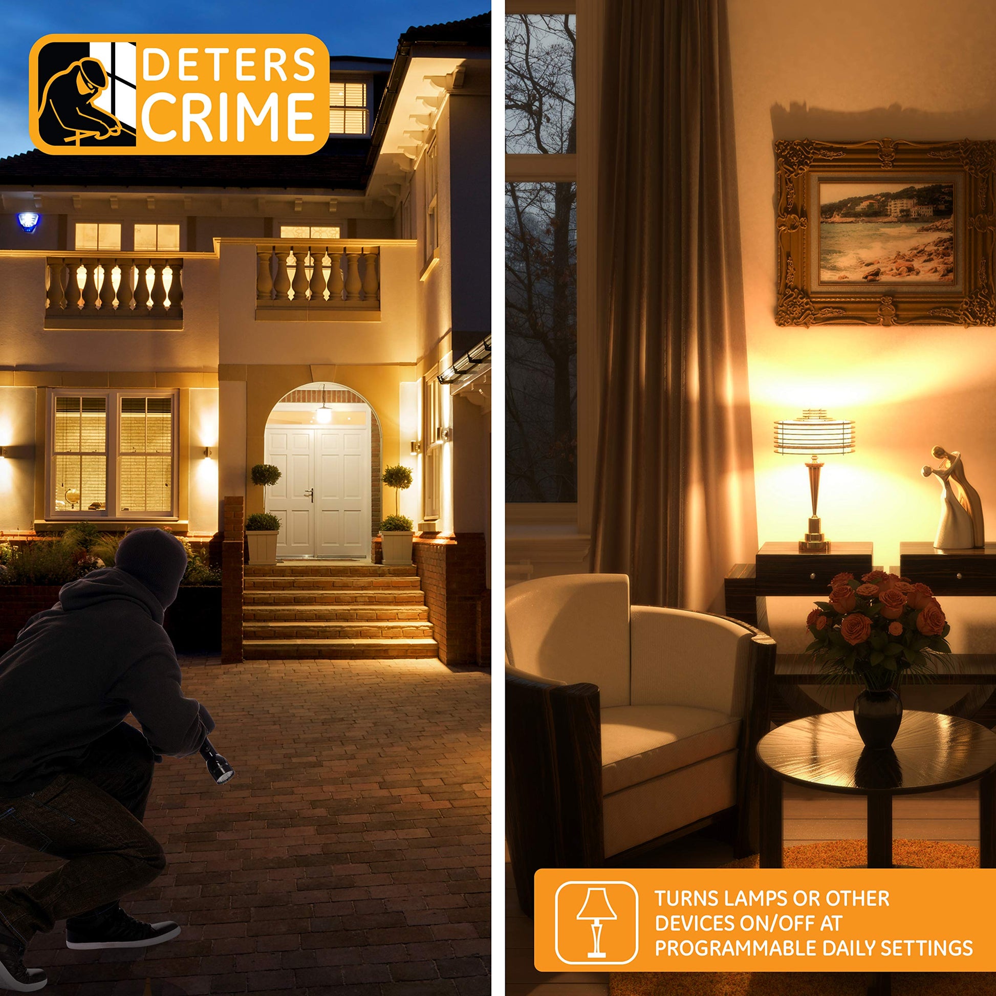 • Turn outdoor lights ON/OFF at your desired times daily – saving you time, money and energy!