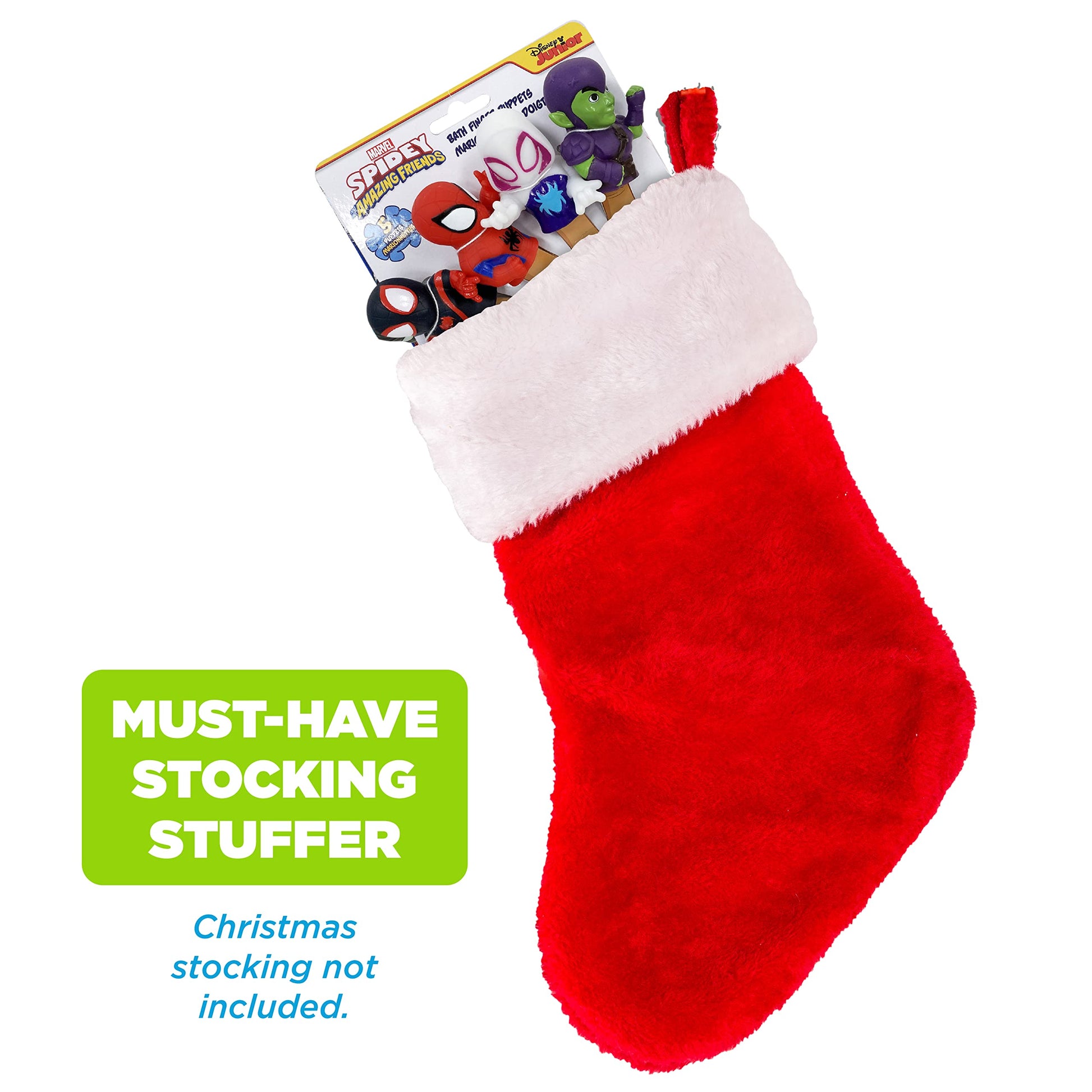 Details: Team up with these web-slinging friends for Bath Time Adventures! These Spidey and His Amazing Friends 5 Piece Bath Finger Puppets are a bath time essential for little ones. Designed with little hands in mind, simply slip these tiny puppets over any finger to bring the superheroes to life! Perfect for in the bath & out, these finger puppets make for an excellent educational resource- aiding in teaching your child colors, counting, and more! Since they are fully waterproof, bring them to the pool or the beach for an aquatic adventure with friends. Crafted with soft, thick, and durable PVC, each puppet is designed to hold up playtime after playtime. For parents, the possibilities are endless for these puppets- they make for perfect party favors and great gifts. When springtime rolls around, use them to help fill your child’s Easter basket or as a surprise inside an Easter egg! During the holidays, these puppets are a spectacular stocking stuffer or a heartfelt Hanukkah gift. This pack of five includes 1 Spidey, 1 Ghost Spider, 1 Miles, 1 Rhino and 1 Green Goblin! Watch your child’s imagination soar as they use these puppets for playtime, bath time, story time, and more!