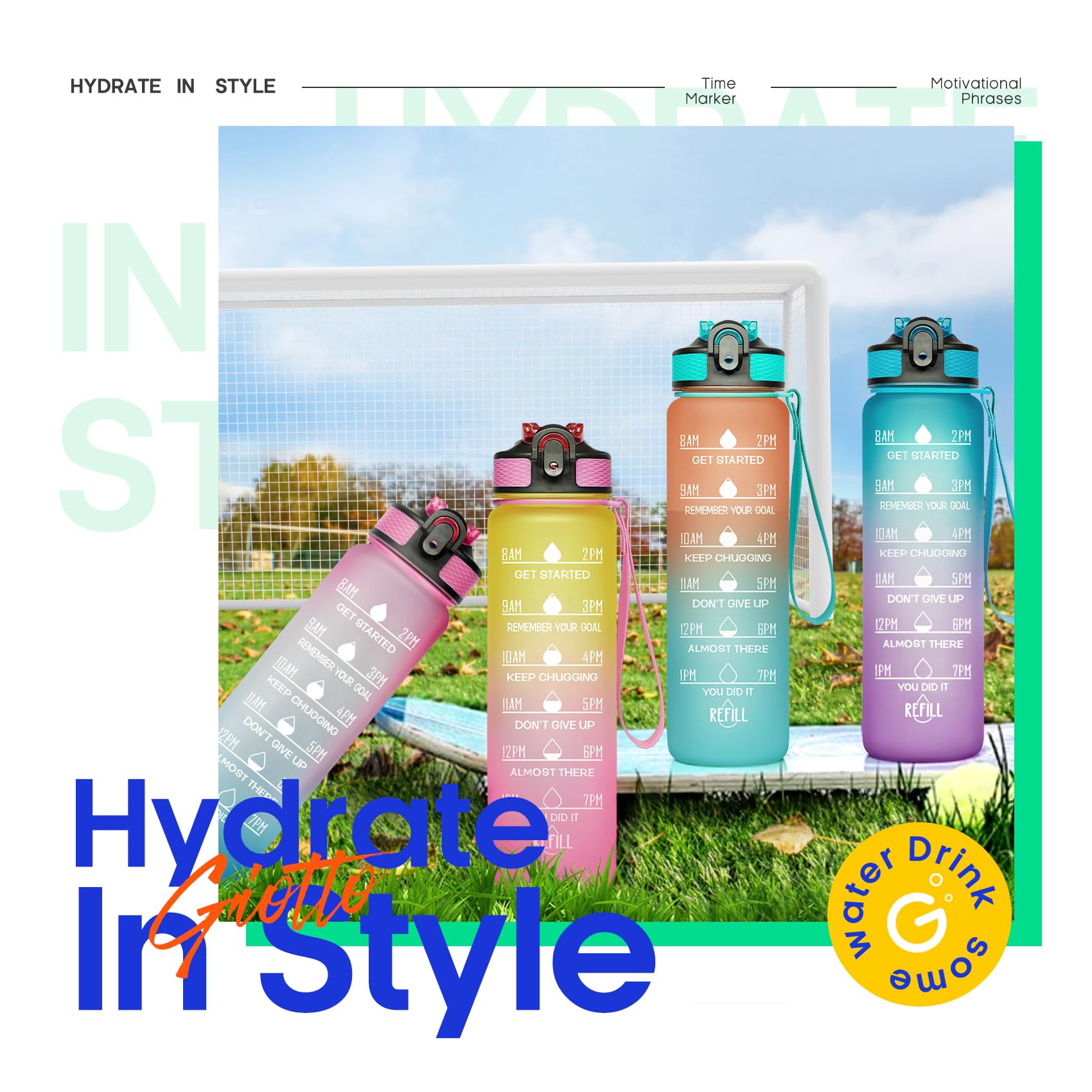 • Motivational Quote & Time Marker: Features an inspirational quote and time markers to help you stay hydrated and reach your fitness goals.