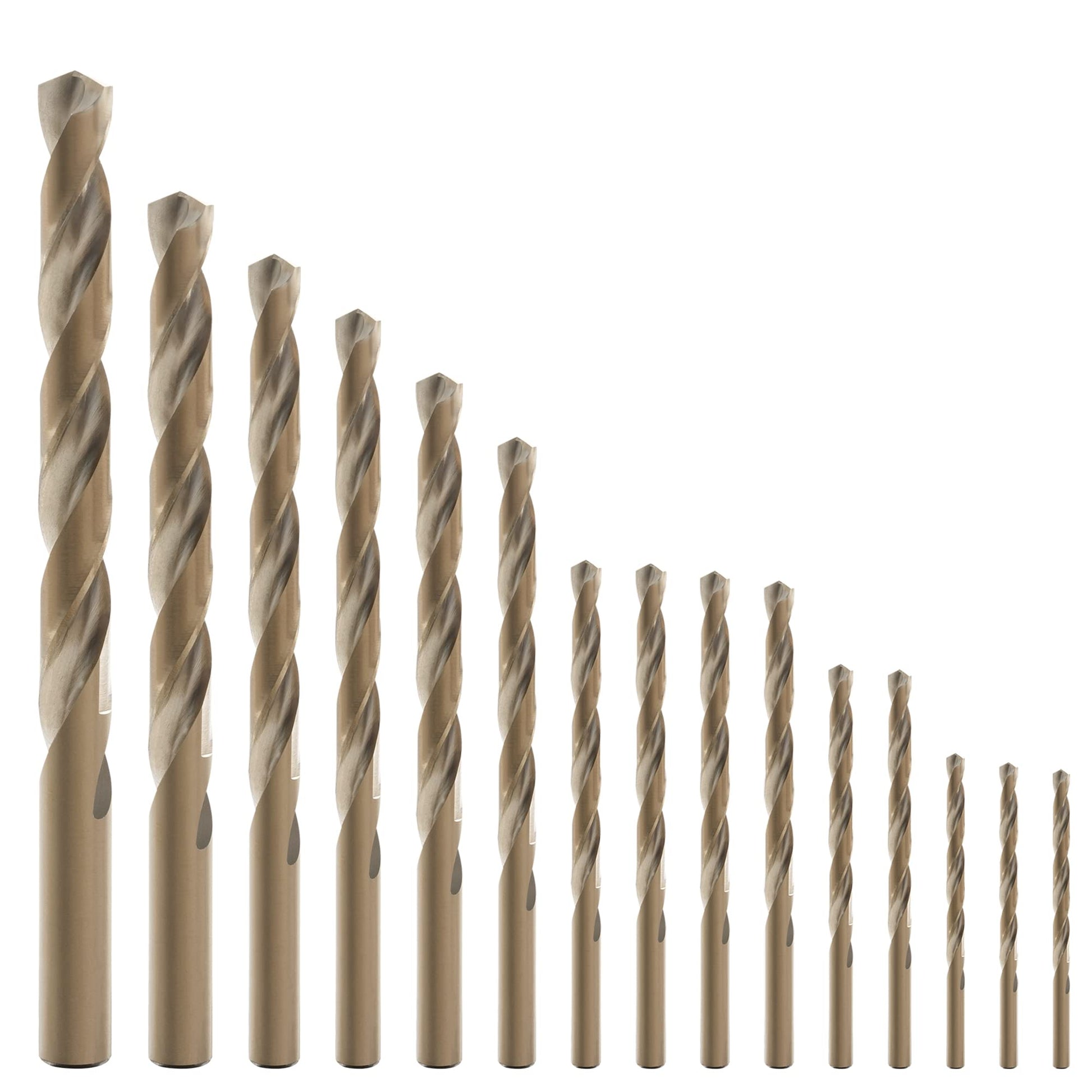 GMTOOLS 15Pcs Cobalt Drill Bit Set, M35 HSS, 135 Degree Tip, Twist Jobber Length Drill Bit Kit for Hardened Metal, Cast Iron, Stainless Steel, Plastic and Wood, with Indexed Storage Case 1/16"-3/8"