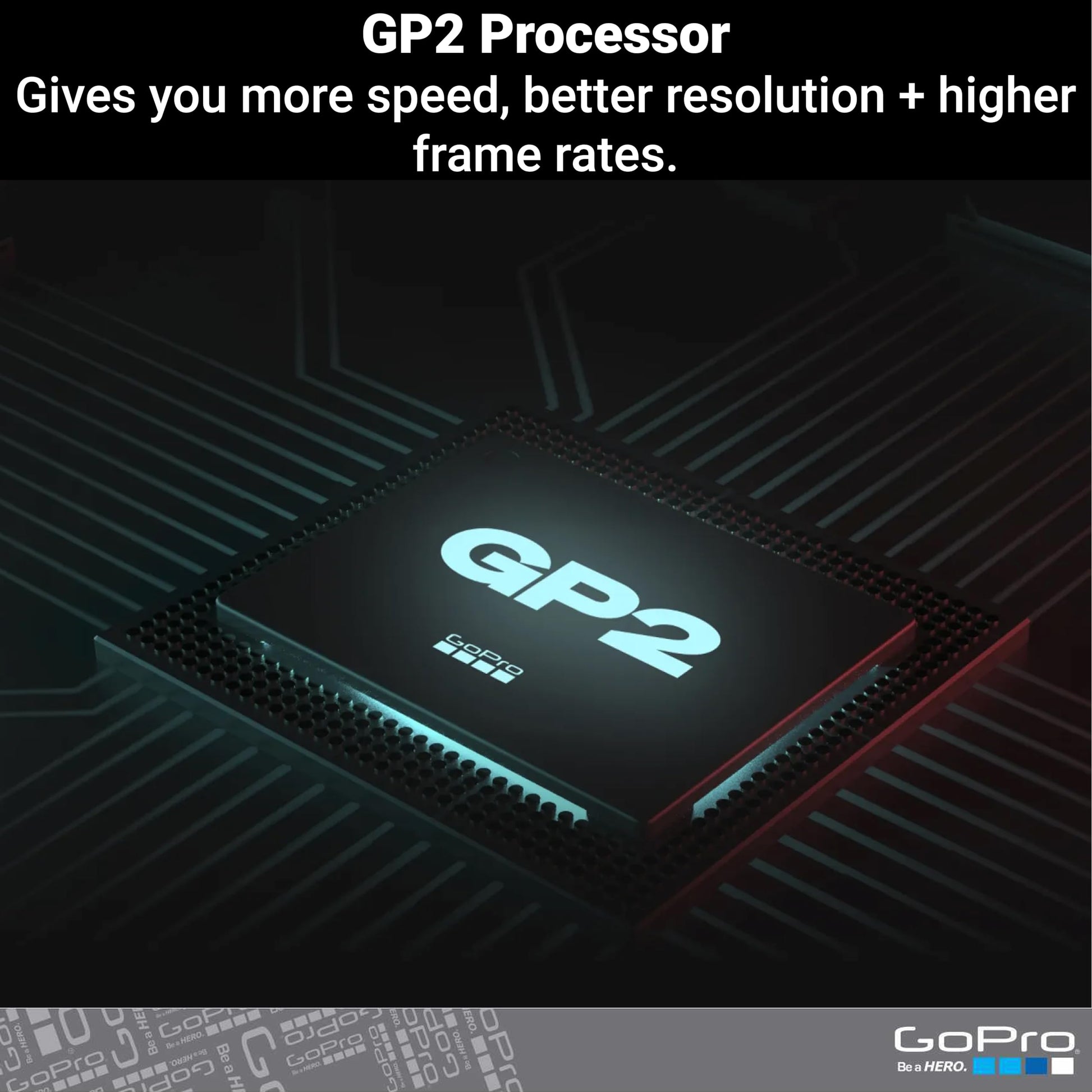 • REVOLUTIONARY PROCESSOR: Faster. Smoother. Better. The powerful new GP2 engine changes the game—snappy performance, responsive touch controls and double the frame rate for amazingly smooth footage. Designed specifically for the demanding nature of the GoPro, the GP2 “system on a chip” is by far our fastest ever.