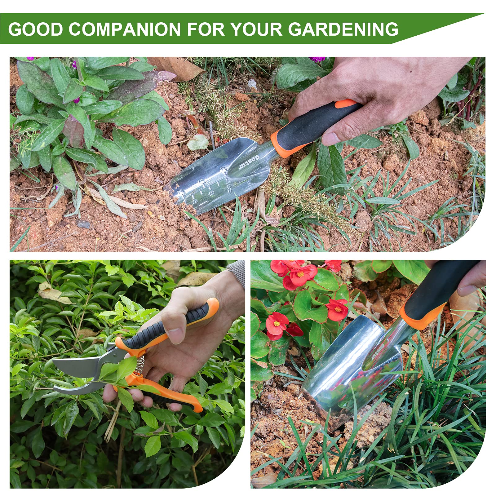 Gostur Garden Tool Set, 3PCS Sturdy Gardening Hand Tools Kit - Trowel/Shovel, Transplanter, Sharp Bypass Pruning Shears/Scissors/Clippers - Comfortable Handle - Ideal Gifts for Men & Women