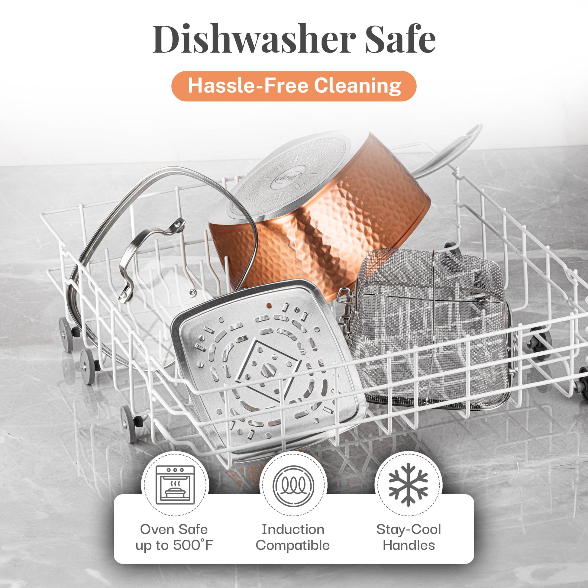 • VERSATILE & DISHWASHER SAFE: This Frying Pan is compatible with all stovetops besides induction and is oven safe up to 500 degrees, allowing you to cook on any gas, ceramic, electric, or halogen stovetop or in the oven. After use, simply throw the cookware into the dishwasher for a quick and effortless cleanup.
