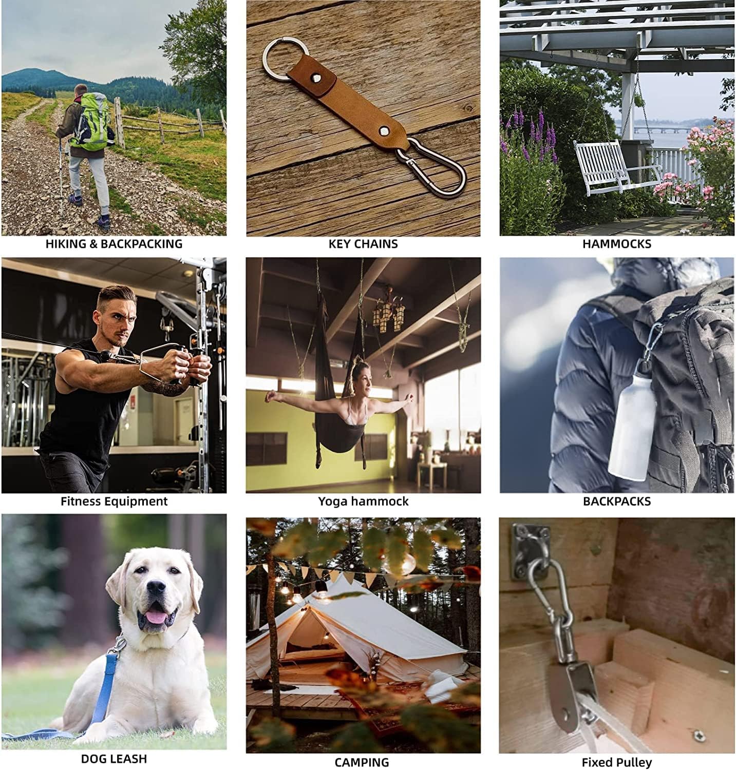 • ☞【Easy Installation】:The stainless steel carabiner clip is super easy to use,carabiner snap link spring gate opens and closes easily and smoothly for making quick connections.You can install wherever you want to install accessories.