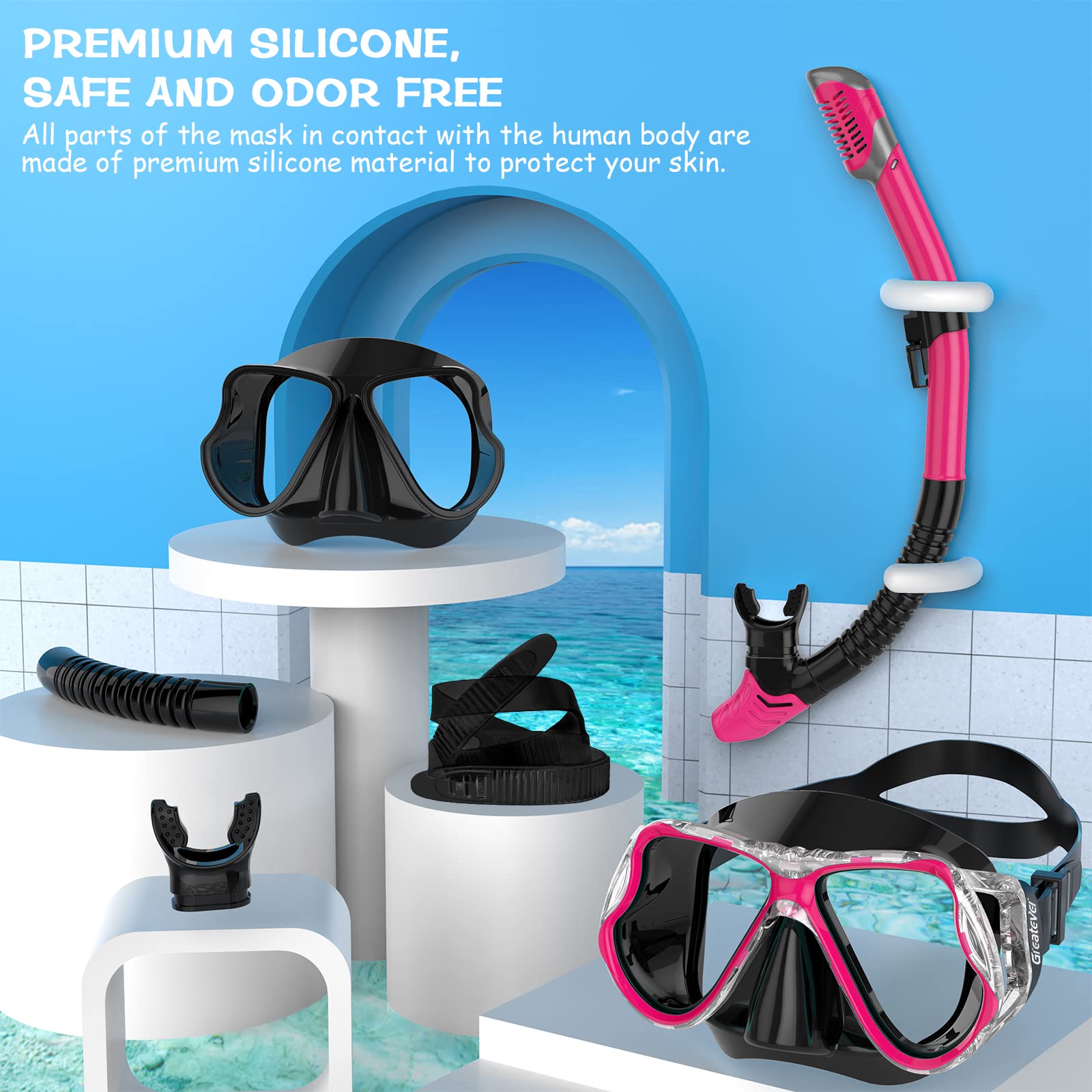 • EASY TO USE AND FITS FOR MOST: As a classic brand, Greatever masks are favored by enthusiasts,even though it has been around for years now.The mask is easily adjustable,has a low inner volume,which is very suitable for deep free diving,and the skirt is small,but the mask adapts easily to a large number of face types.