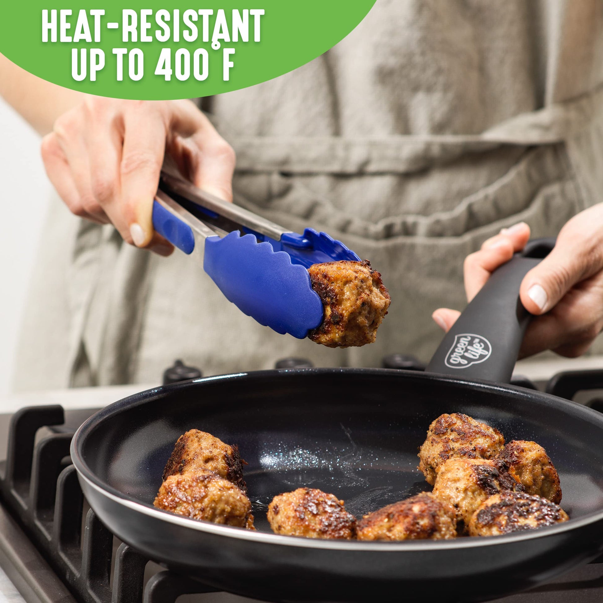 GreenLife Cooking Tools and Utensils, 7 Piece Nylon Set including Spatulas Turner Spoons and Tongs, Dishwasher Safe, Blue