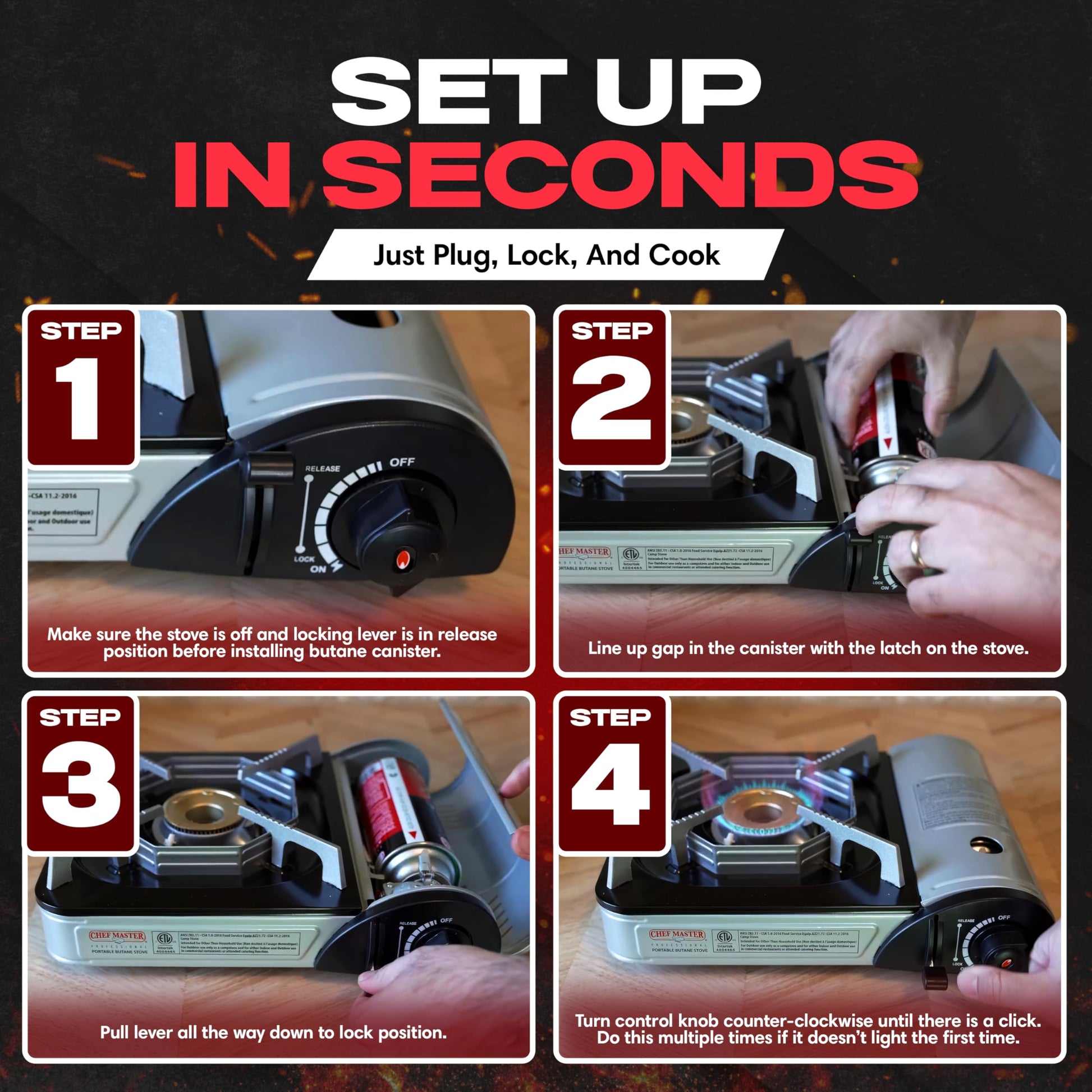 • SIMPLE IGNITION & SAFE, USER-FRIENDLY OPERATION – Light your camp stove with ease using the intuitive ignition system—just attach your fuel, turn the knob counterclockwise past the resistance point, and listen for the click to ignite. If needed, continue turning until the flame starts. Built for safe and straightforward use, this stove is ideal for outdoor cooking in campsites, hiking trails, tailgates, and emergency situations. Ensure proper ventilation, follow safety precautions, and keep flammable materials at a safe distance.