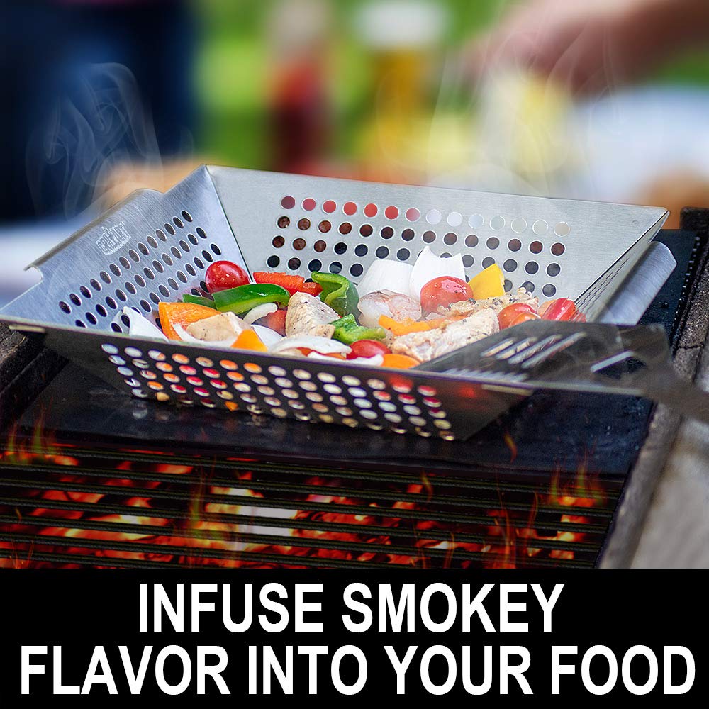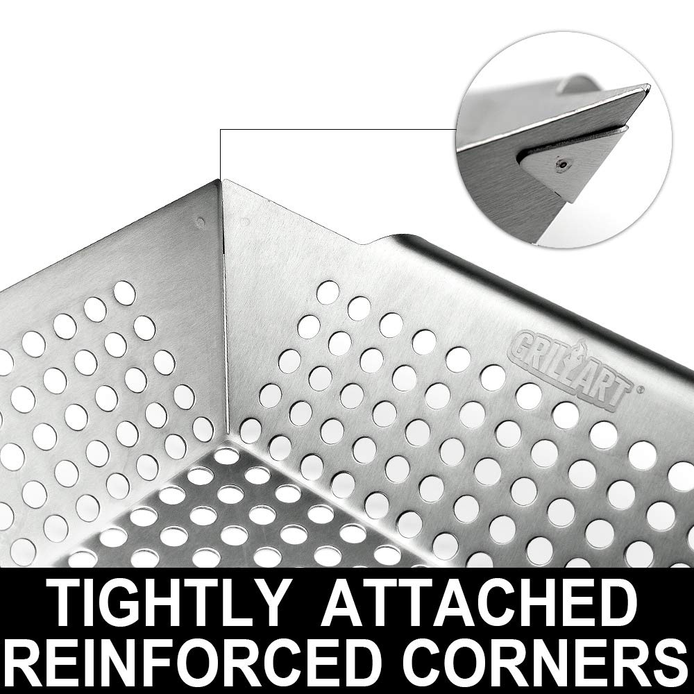 GRILLART Grill Basket Heavy Duty -Large Grill Baskets for Outdoor Grill Vegetables -Stainless Steel Veggie Grilling Basket/Pan - Lasting Grill Vegetable Basket BBQ Grill Accessories, Gifts for Dad Men