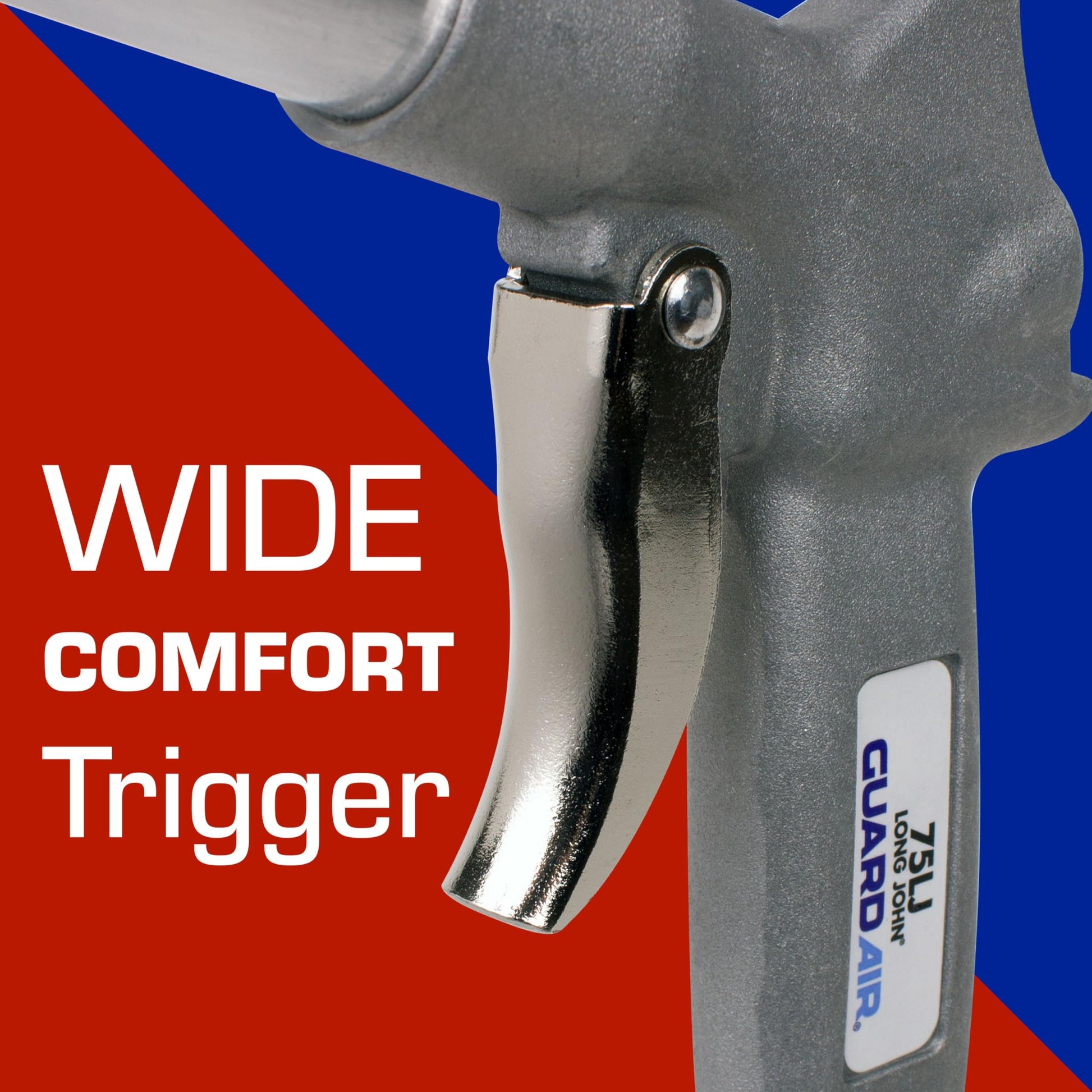 • POWERFUL AND SAFE: The 75LJ012AA Long John safety air gun includes a 12 Inch extension and 1/4 inch FNPT inlet with protection from chip flyback. Perfect for blowing and cleaning floor debris, manonry forms, tanks, ovens, molds, rafters, machinery and storage.