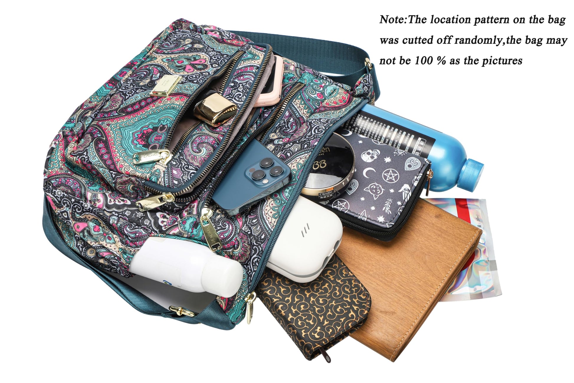 • 10 functional pockets in total, ideal for phone,water bottles, iPad, devices, wallet & other necessities, Note:Please note that location pattern prints are random,it may be not exactly the same as pictures.