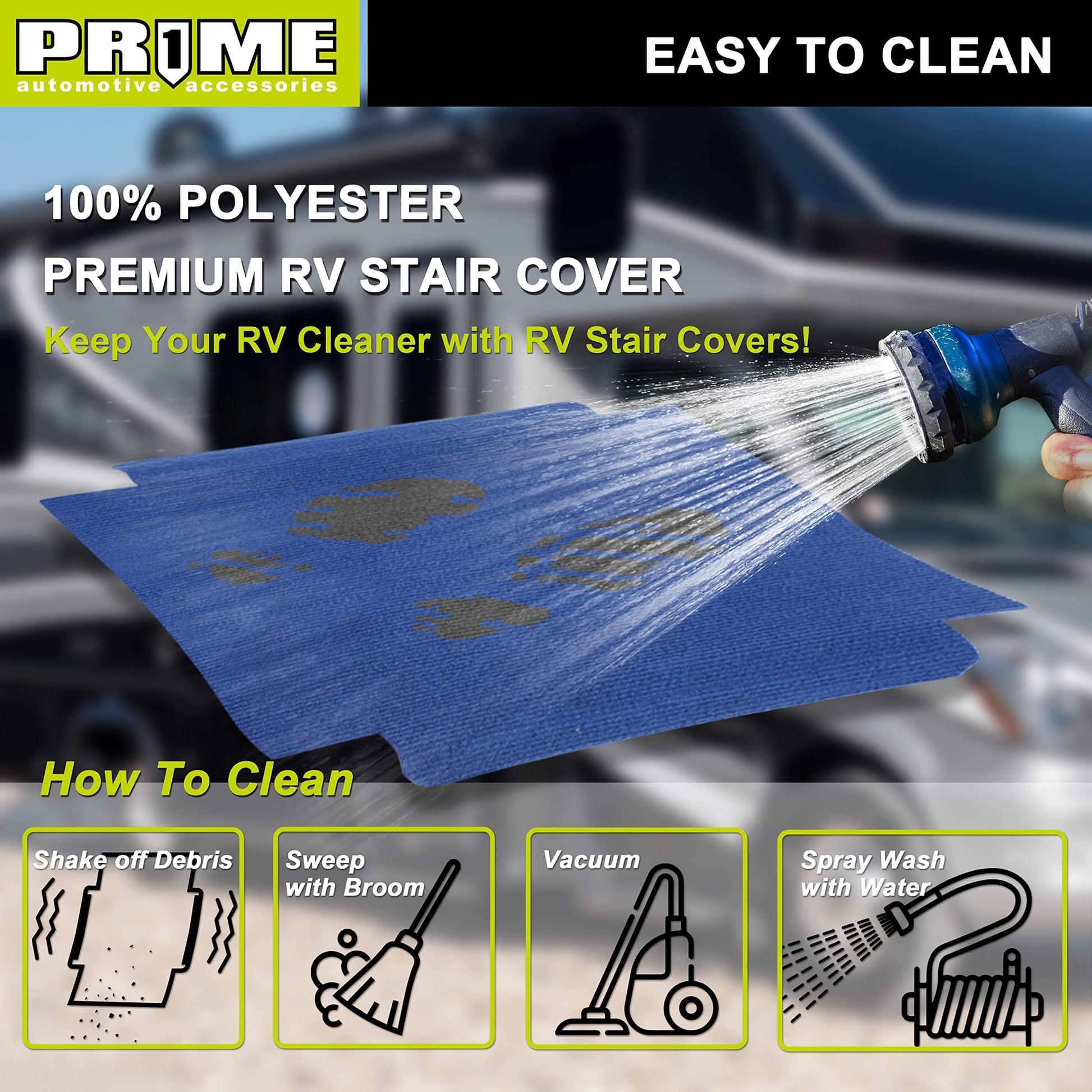 • Easy to Install & Clean: Self-Sticked Velcro Step rugs are easy to remove; No Screws, Glue, and/or Tools Needed; Polyester Step Cover is also easy to keep clean, just shake off debris, sweep with a broom, use vacuum or spray wash with water