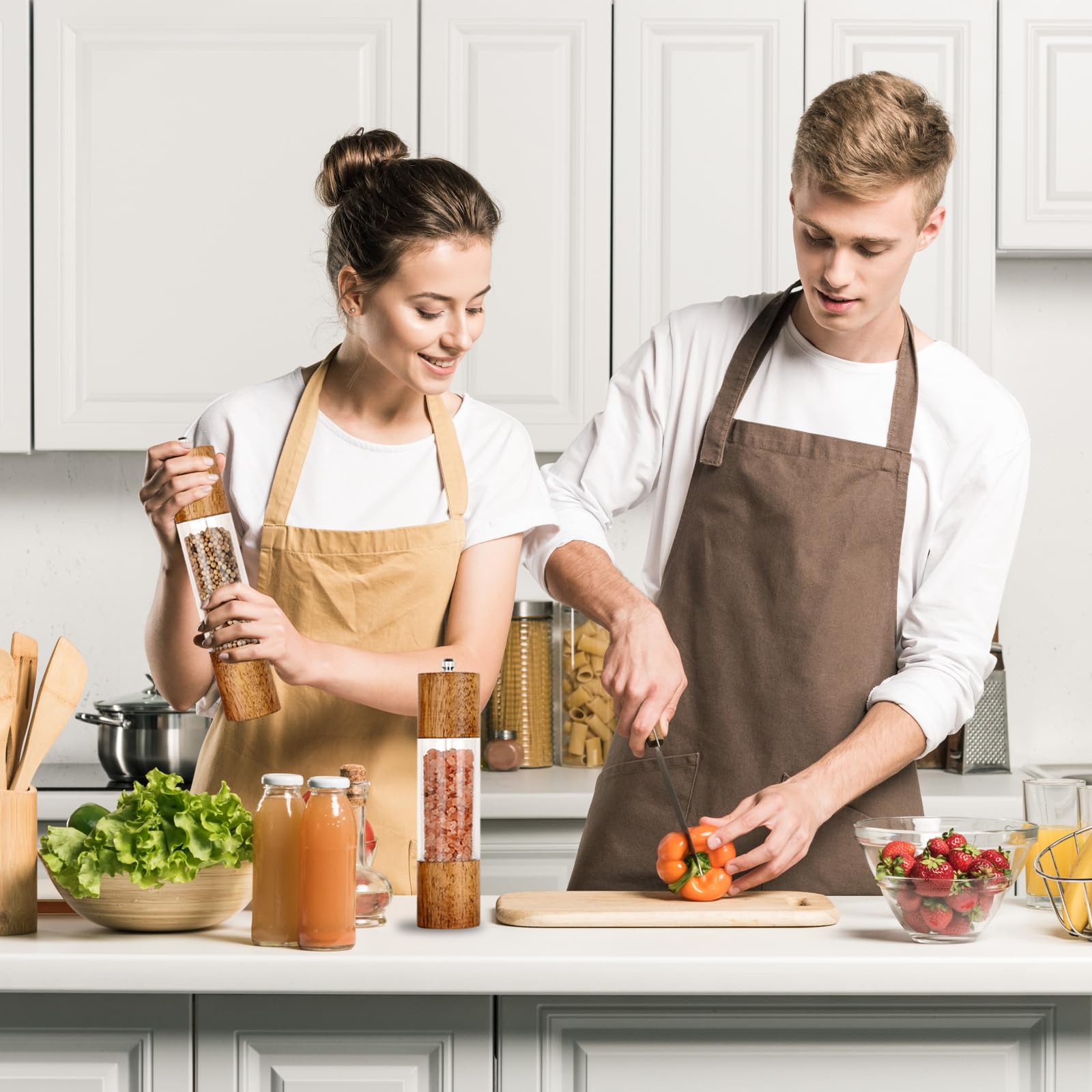 • Salt pepper grinders: Easily fill the salt or pepper to the salt grinder and pepper mill by removing the top. The clear acrylic body can help you identify the sea salt and pepper easily and will let you know when it's time to refill again