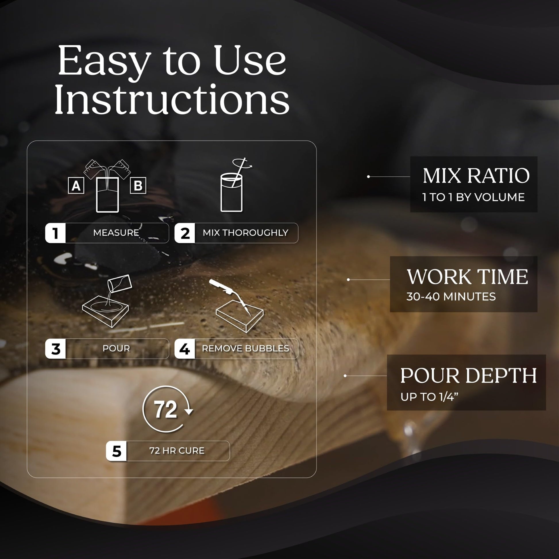 • Crystal-Clear Finish - Unleash your creativity with our epoxy resin's crystal-clear, high-gloss finish. Add a touch of sophistication to your tabletops, resin crafts, and more.