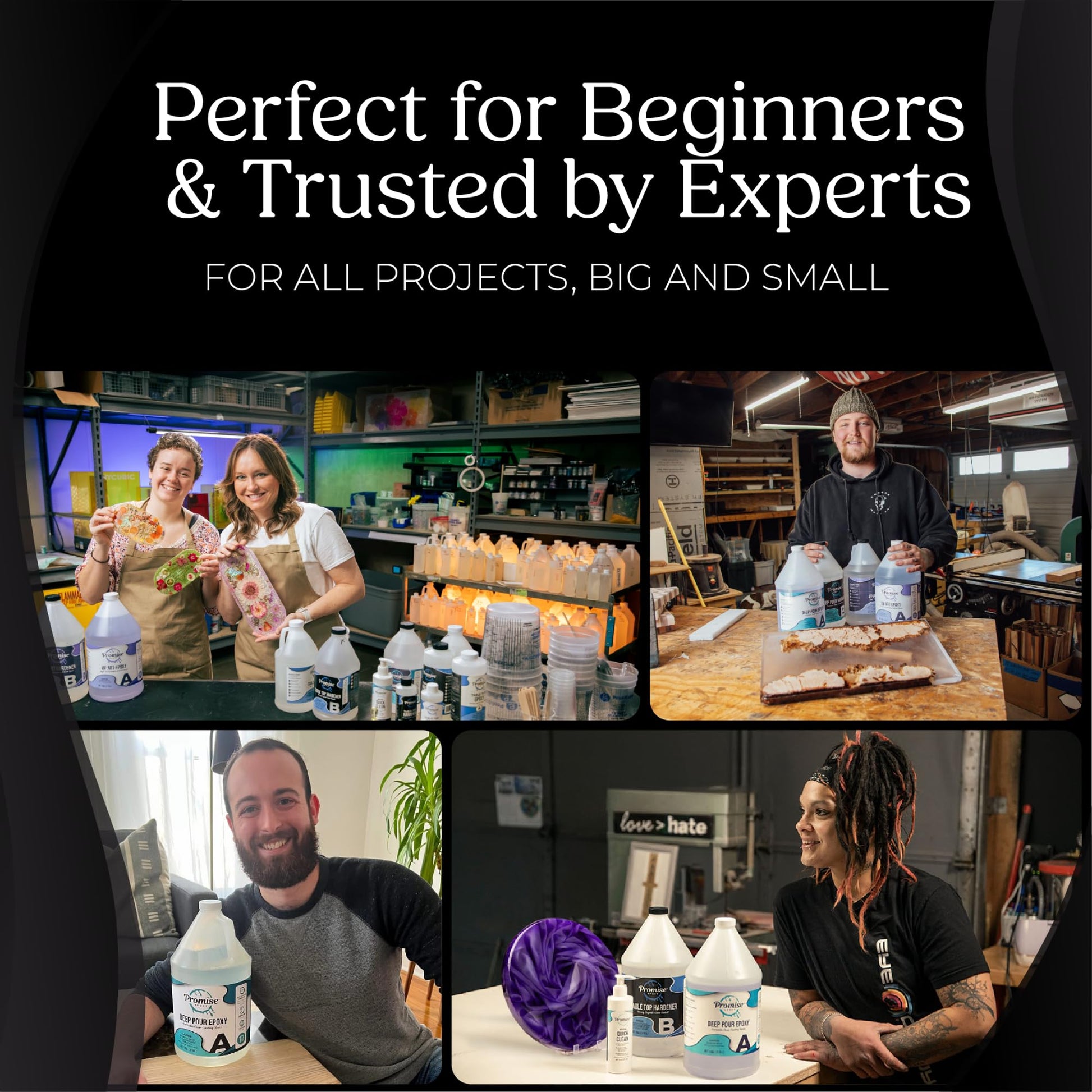 Promise Epoxy Epoxy Resin Kit 1 Gal-Crystal Clear, UV Resistant, Self Leveling, Food Safe for Table Top, Arts & Crafts, Wood Casting, Jewelry Making, Use with Mica Powder, Silicone Molds, Alcohol Ink
